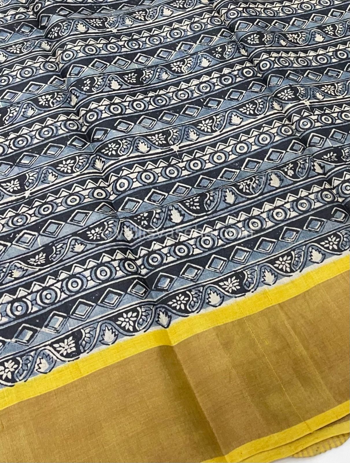 Pure Tussar Silk Is a Natural , Breathable Fabric That Allows For Airflow And Moisture Wicking, It Has a Slightly Coarse Texture That Gives It a Unique Feel And Appearance. All Over Printed With Contrast Pallu and Contrast blouse.