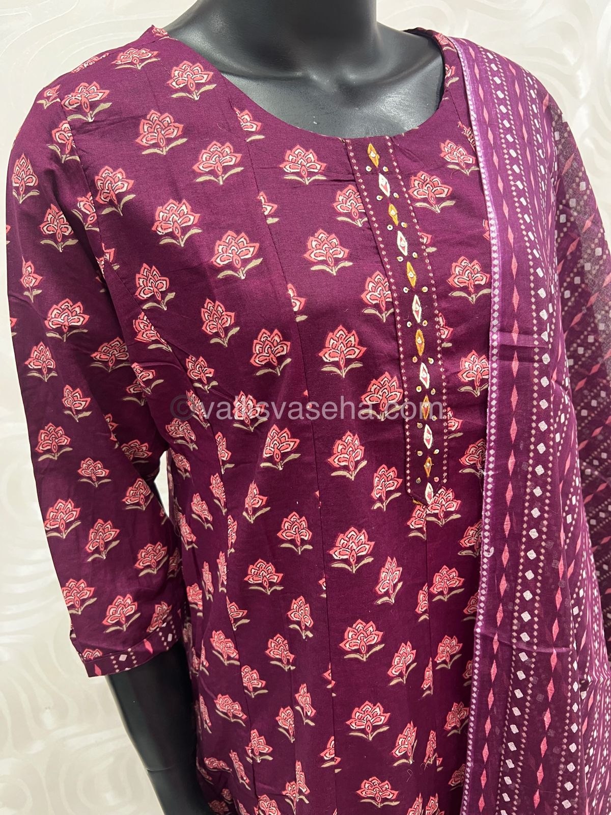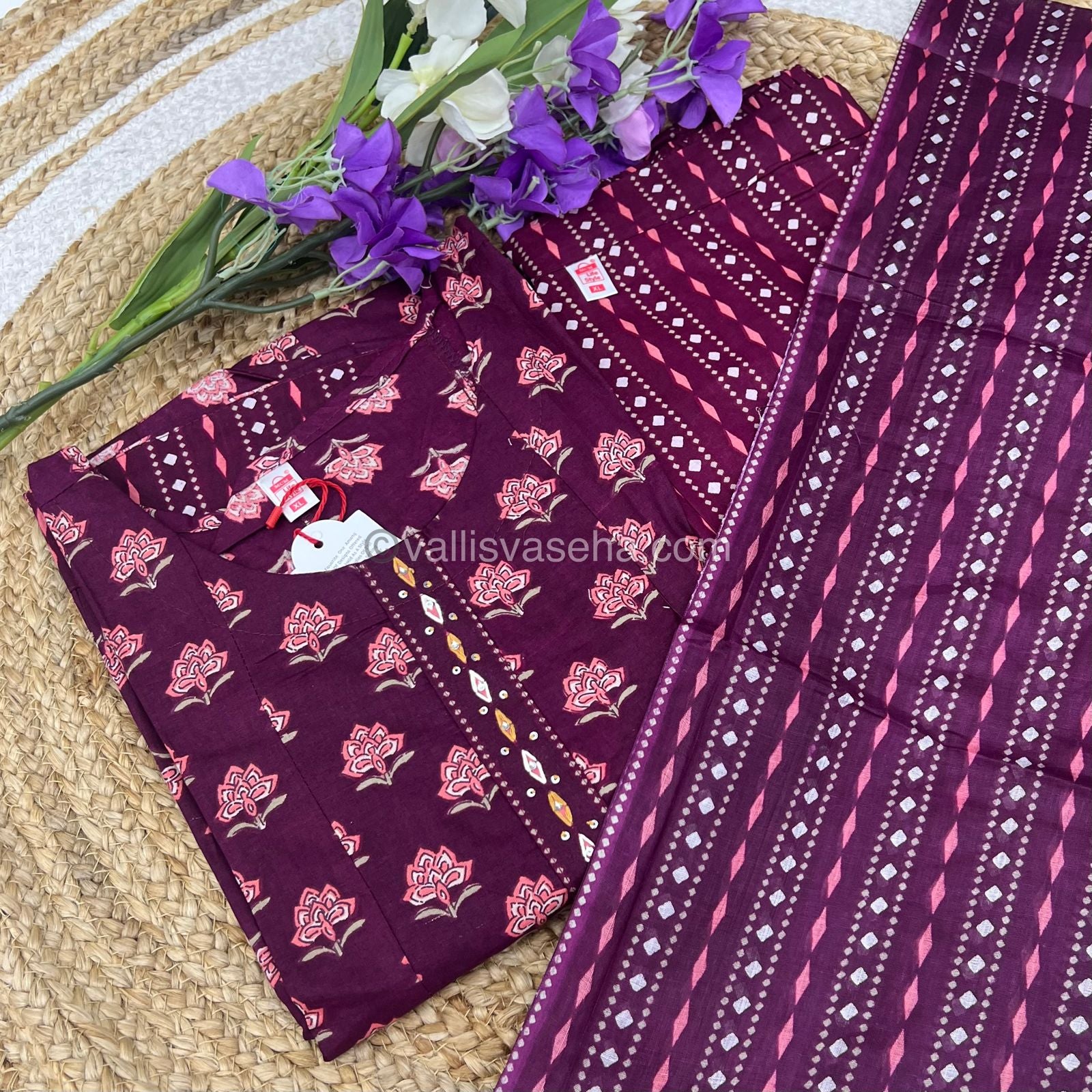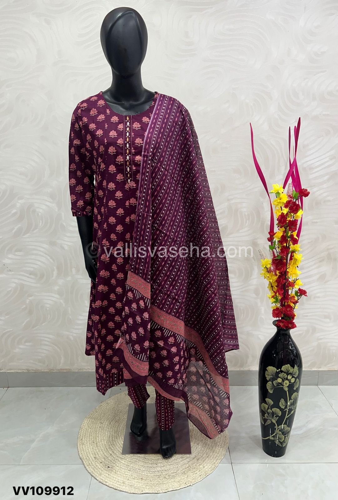 Ready Made - Anarkali - Salwar, Kameez & Duppatta(3pc)- Printed Cotton - VVAS003
