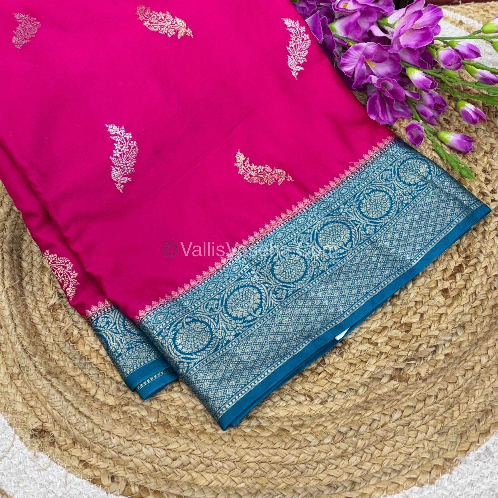 Premium Viscose Saree - All over Gold and silver Leaf Butta design with contrast zari border & contrast rich pallu and contrast Zari design blouse .