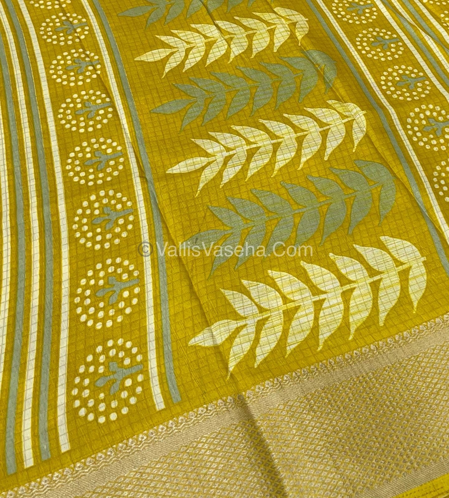 Semi Binny Silk / Semi Dola Silk saree with Banarasi border in both sides with beautiful Floral design and with printed Pallu & printed Blouse.