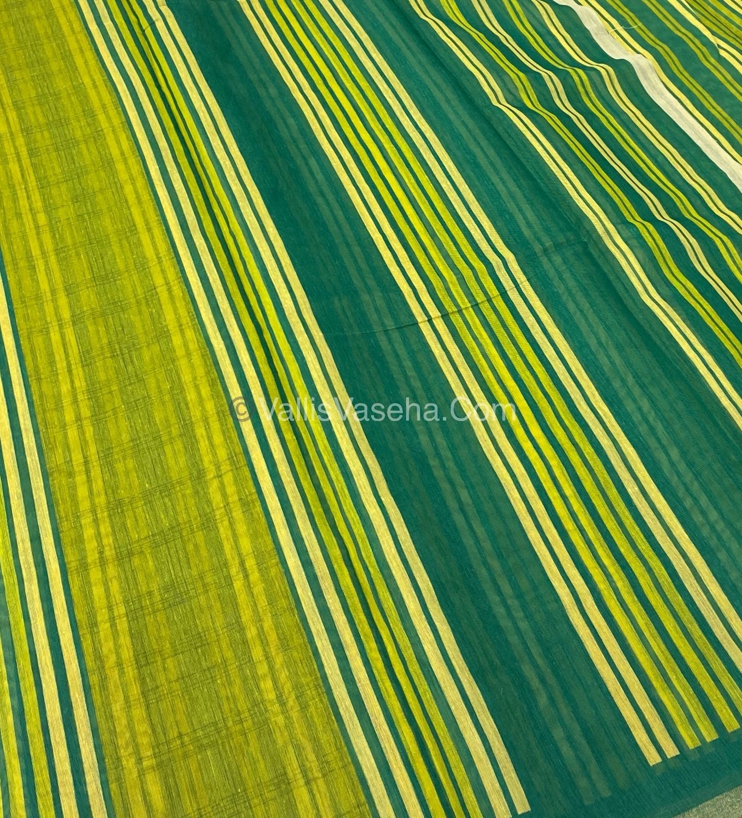 Semi Chanderi Saree - Green & Green Combo - VVSCS003