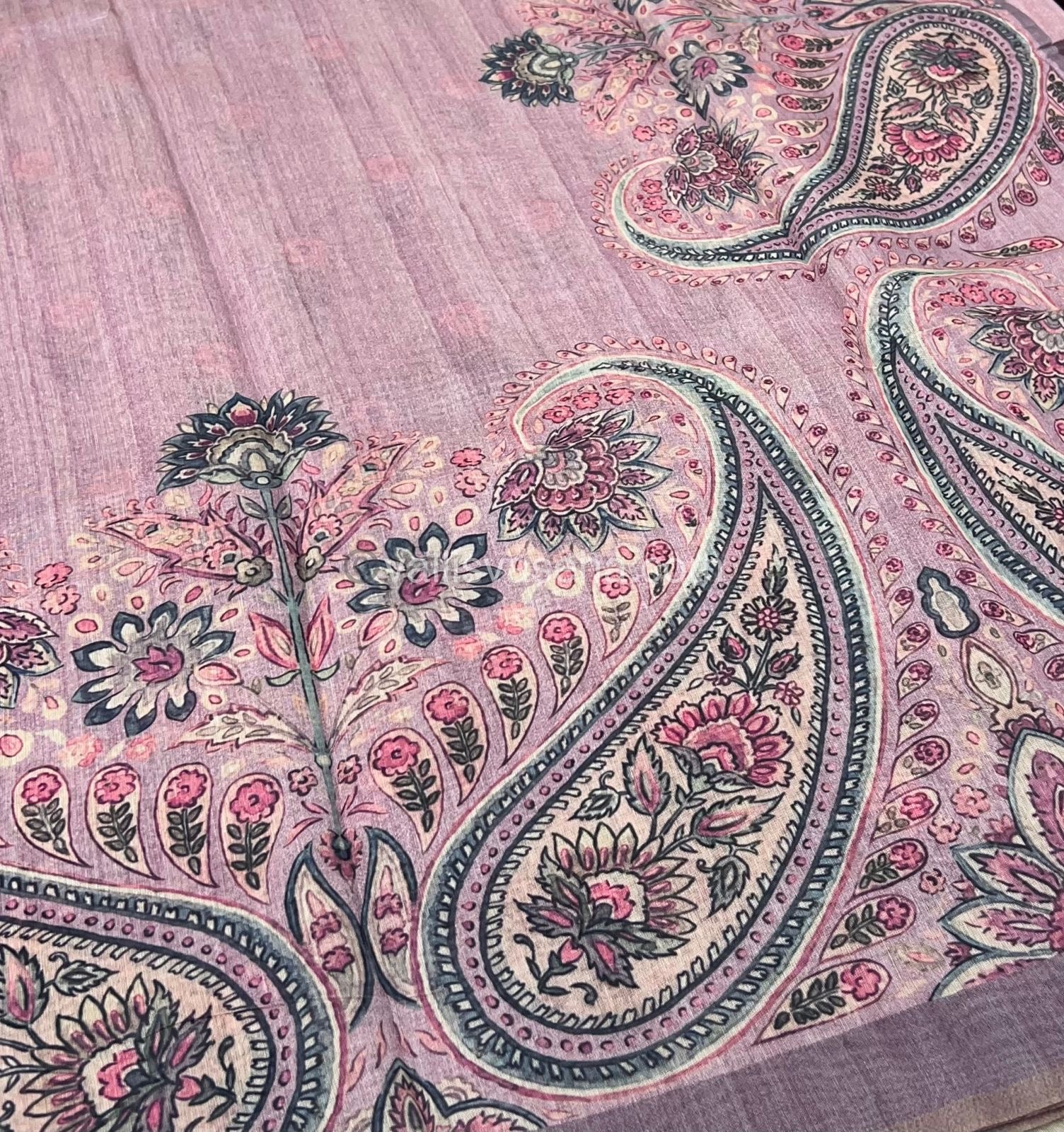 Light weight - Semi Chanderi Saree with Digital Prints .Digital printed Pallu With Tassels & Printed Blouse .Light weight Saree . Good for Office / Casual Wear