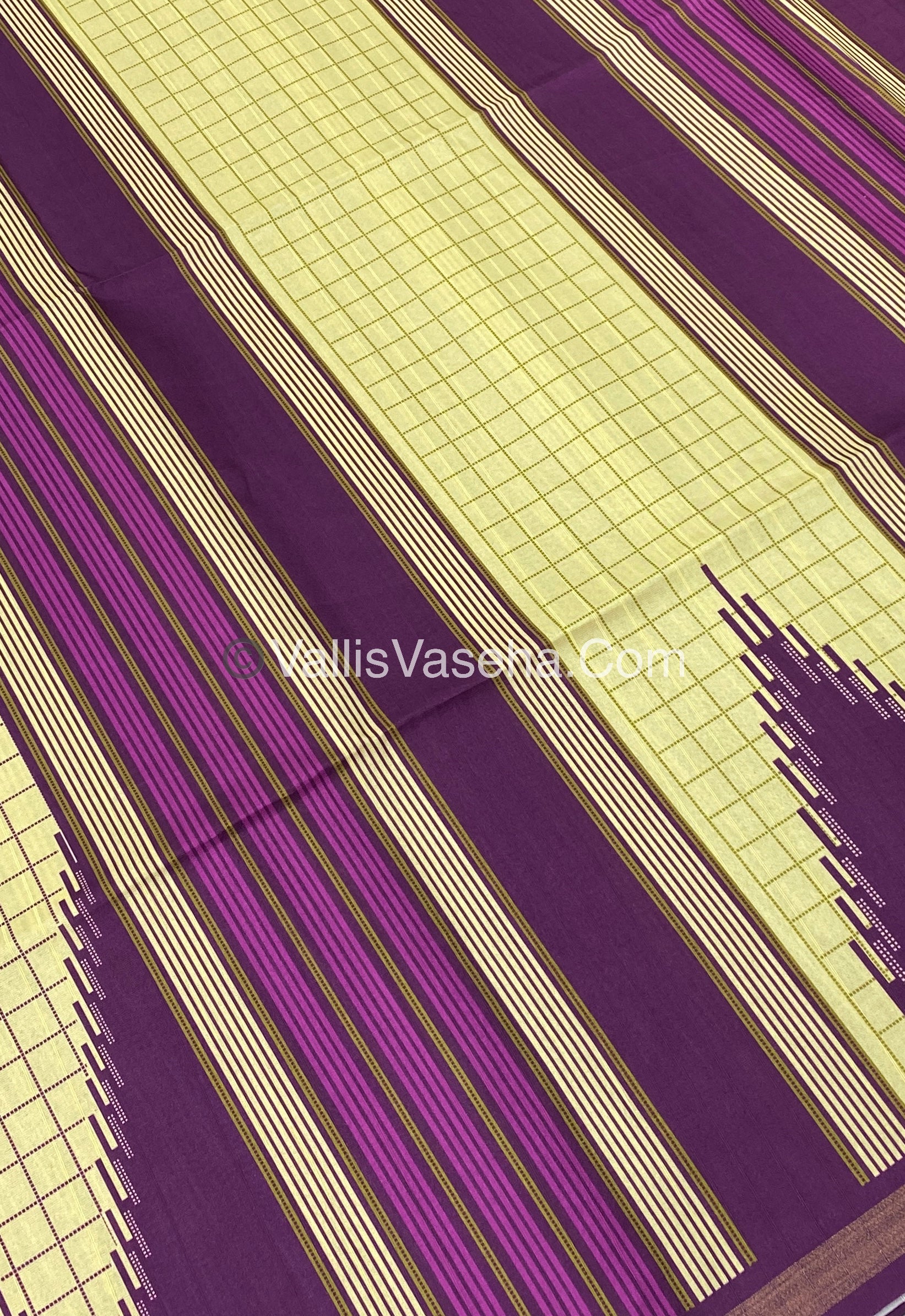 Semi Chanderi Saree - Dark Cream & Purple Combo - VVSCS003