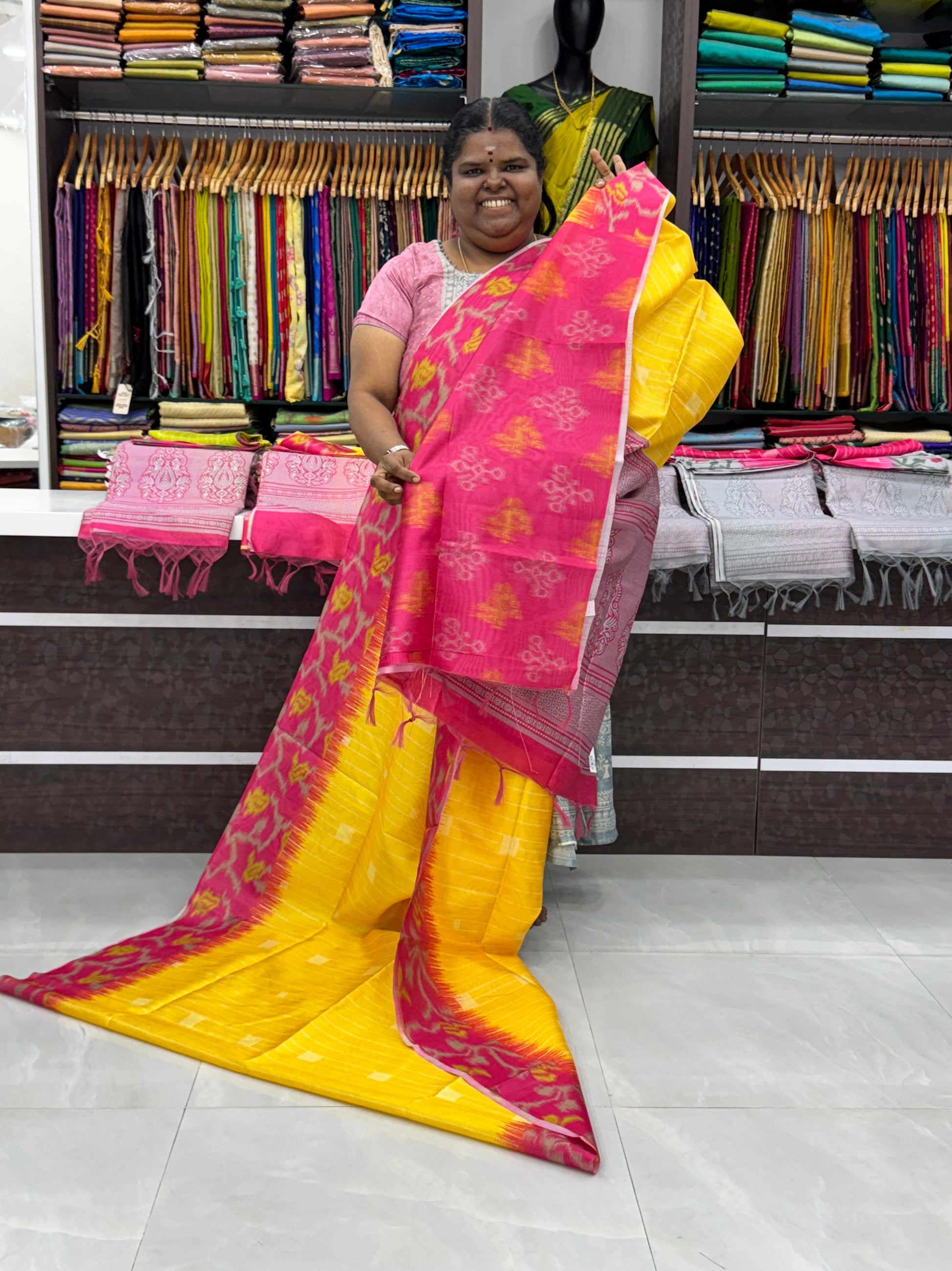 Semi Chappa Silk - Yellow with Pink- VVSC002