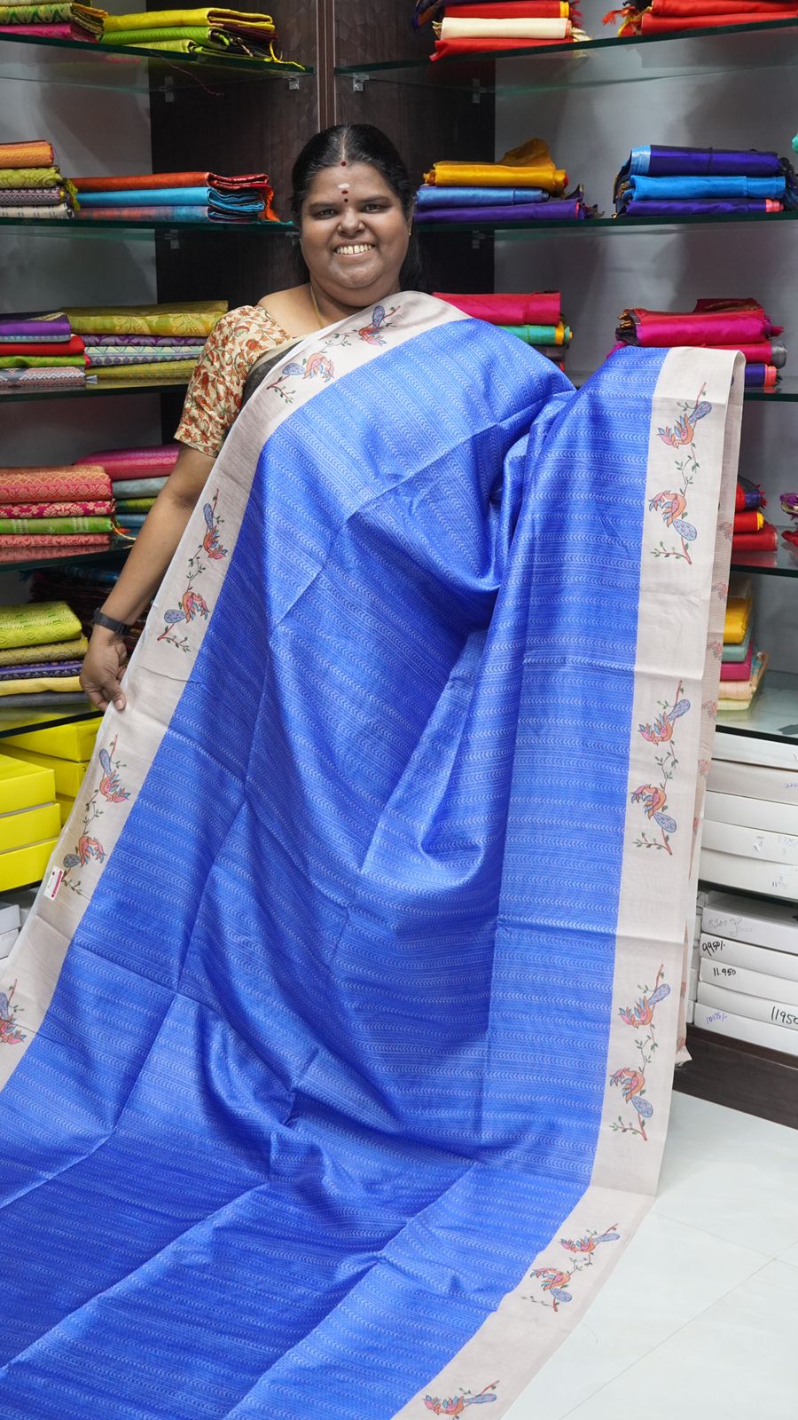Semi Chappa Silk saree with contrast cream border with double peacock print , Elegant Printed Pallu with tassels & Peacock Printed Blouse.