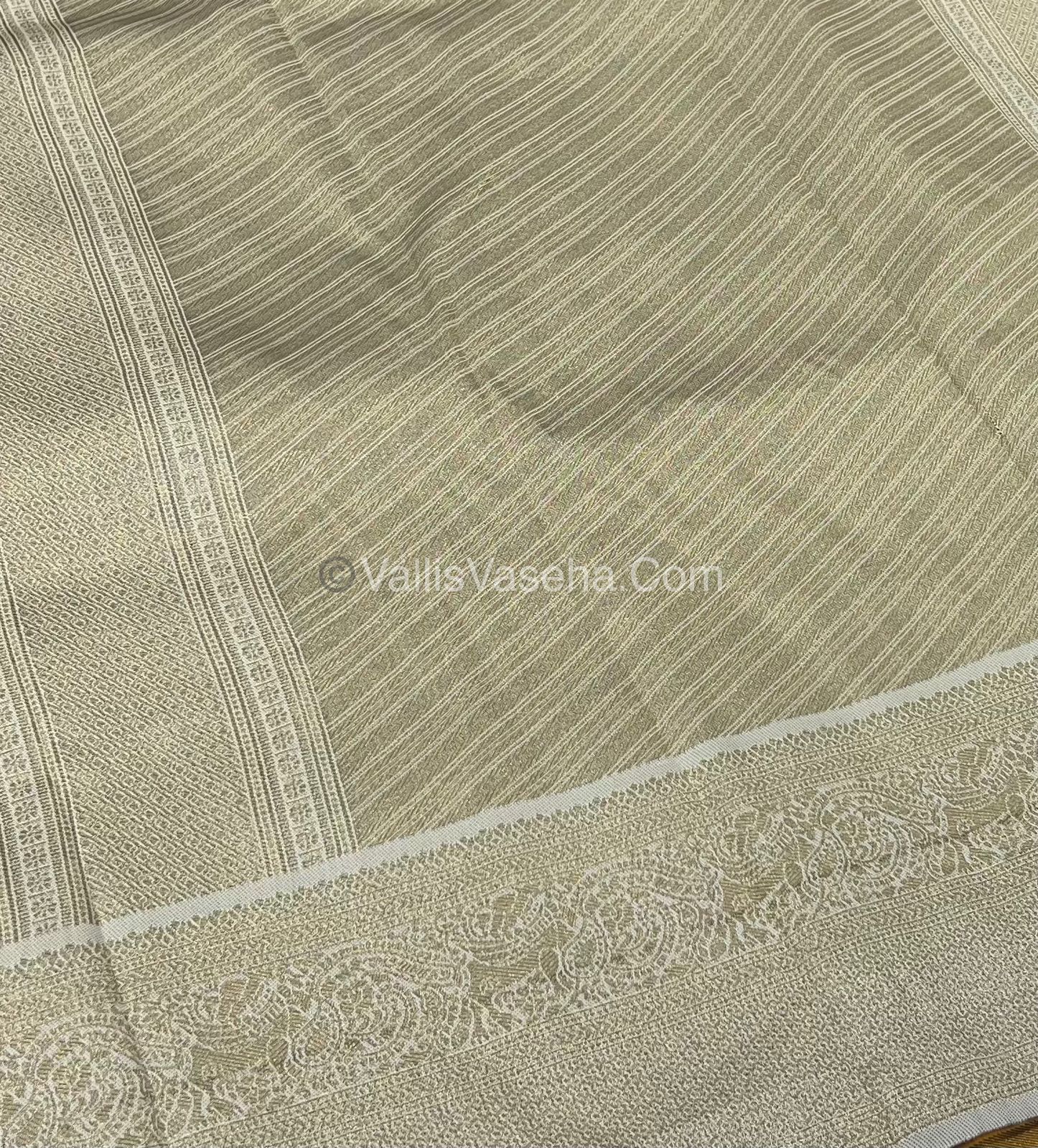 Semi Kanchi Silk Saree. Very soft texture. Lovely Color shades .All over Zari woven waves design & Rich contrast border with contrast rich pallu and contrast butta blouse with border for sleeves . Good for gifting or self use .