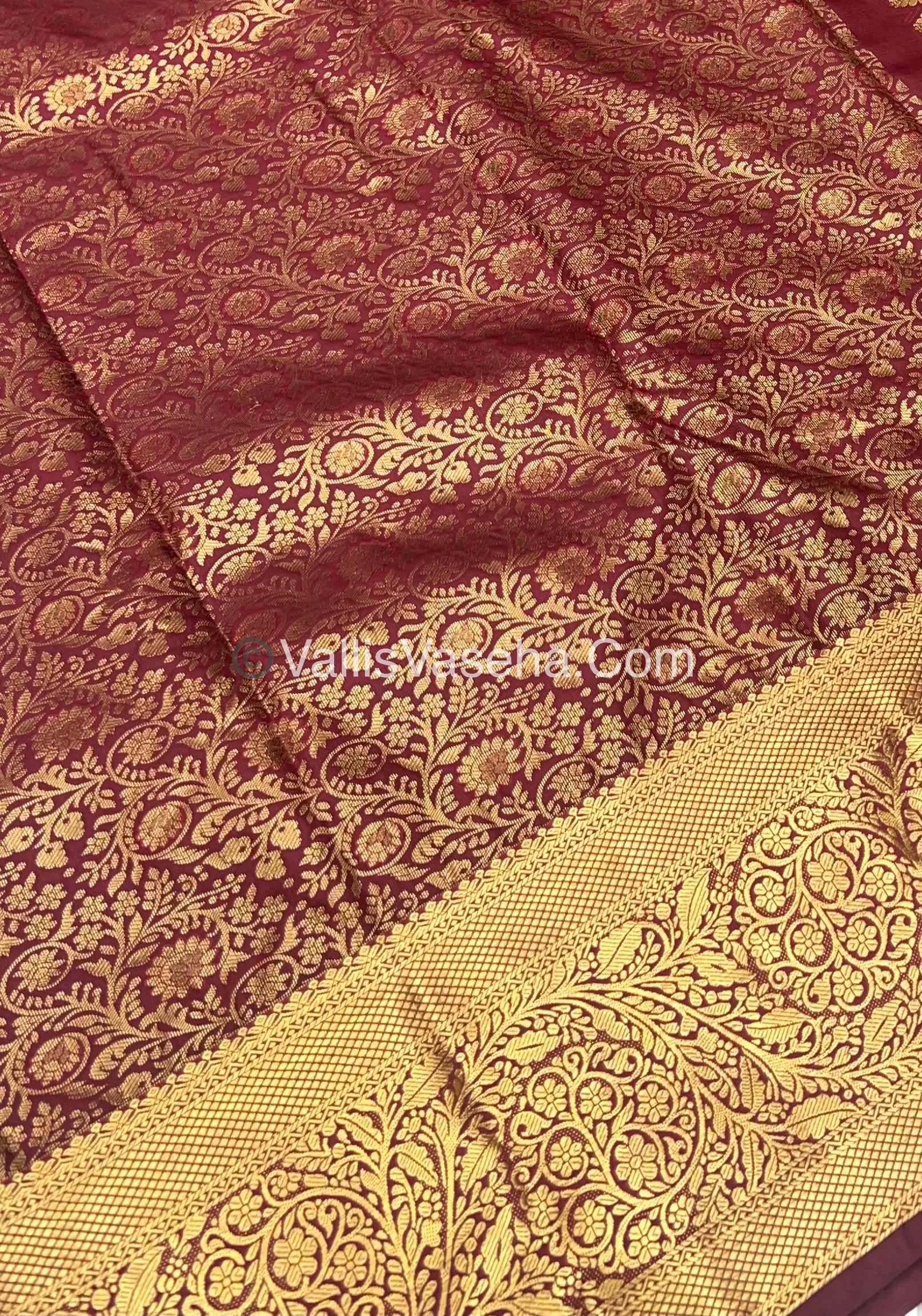 Semi Kanchipuram Silk - Wine Merun shade - Semi Bridal - VVSKS002