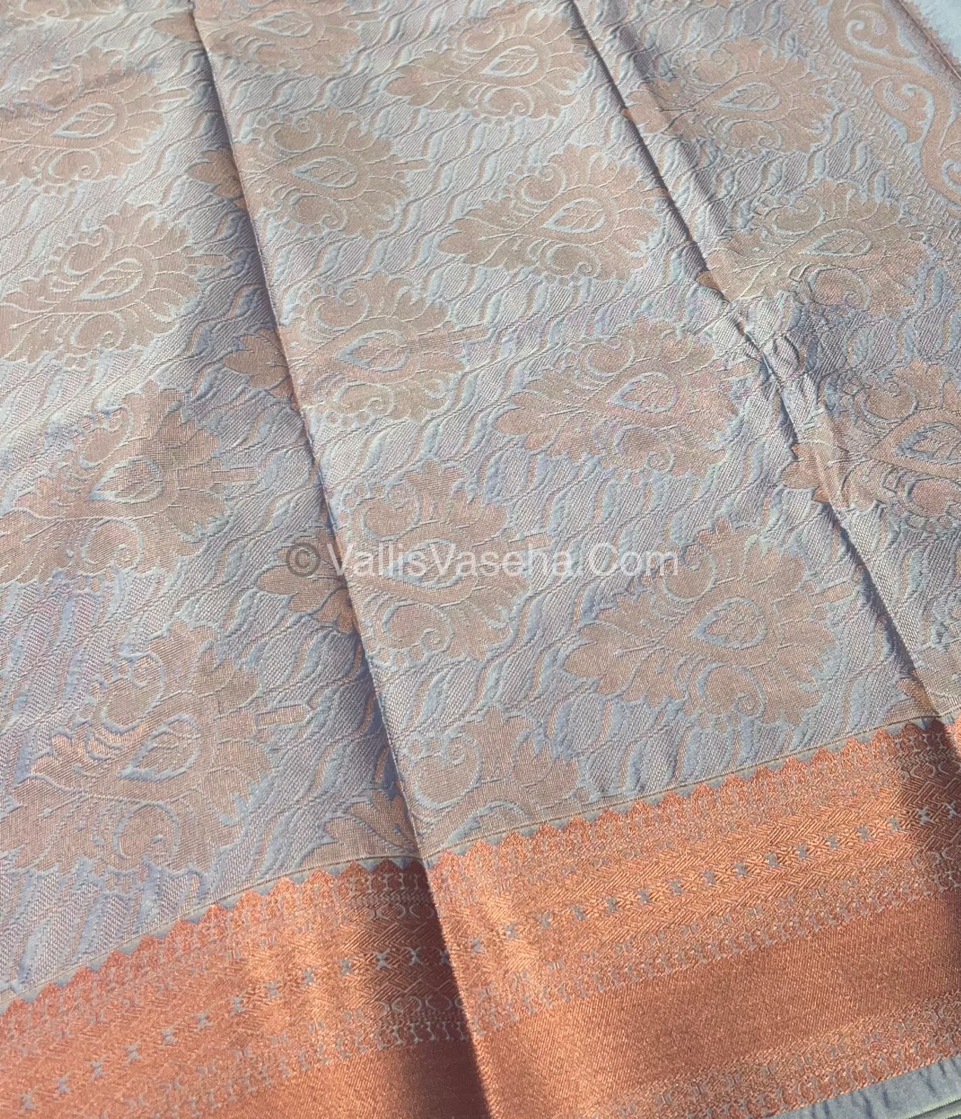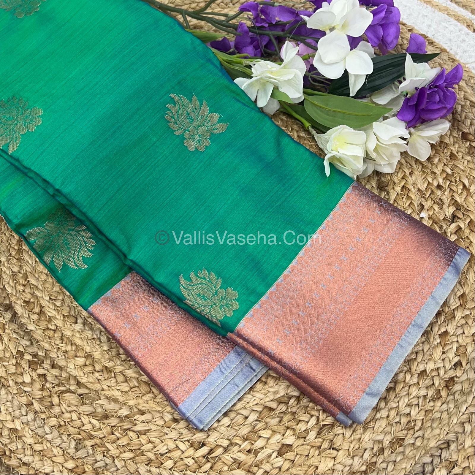 Kanchi Semi Soft Silk Saree. Very soft texture. Lovely Color shades .All over Butta , Rich Contrast Pallu and contrast blouse with border for sleeves . Good for gifting.