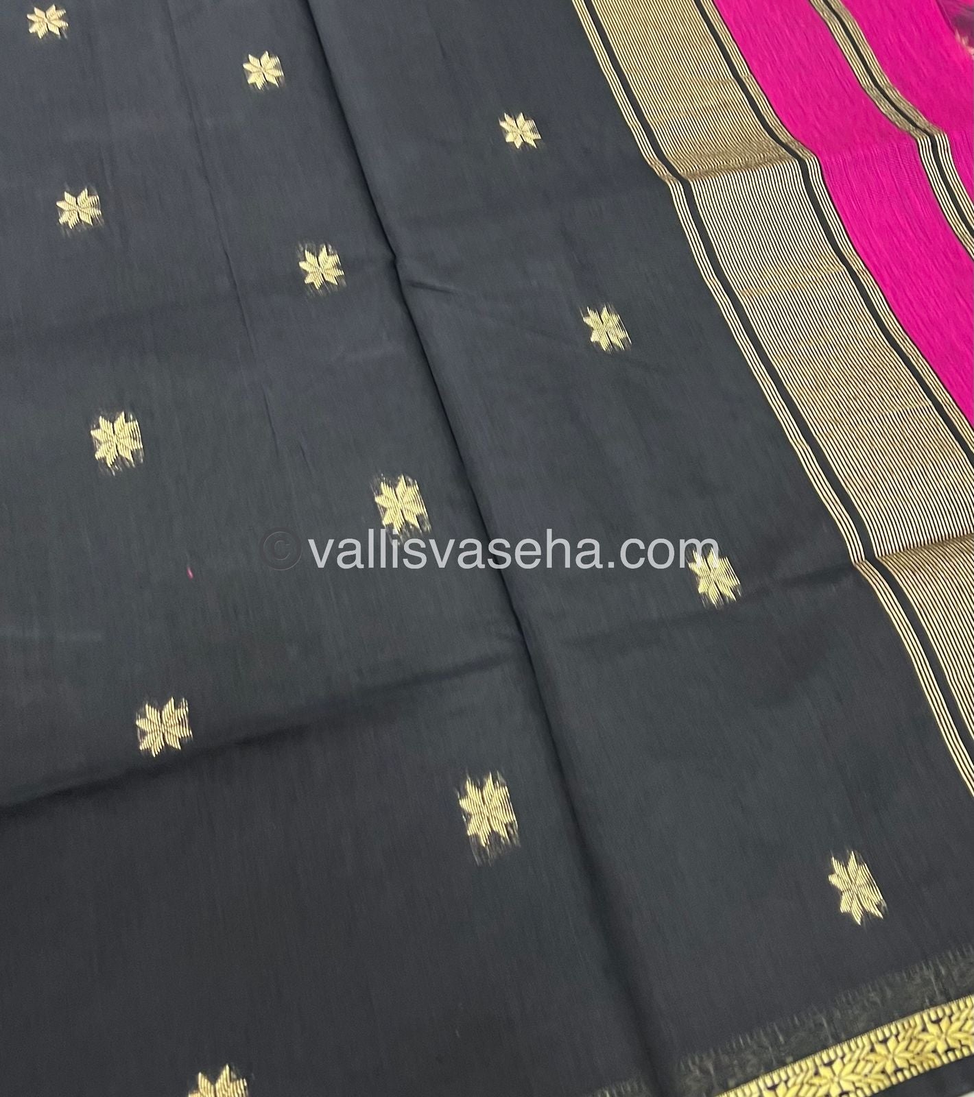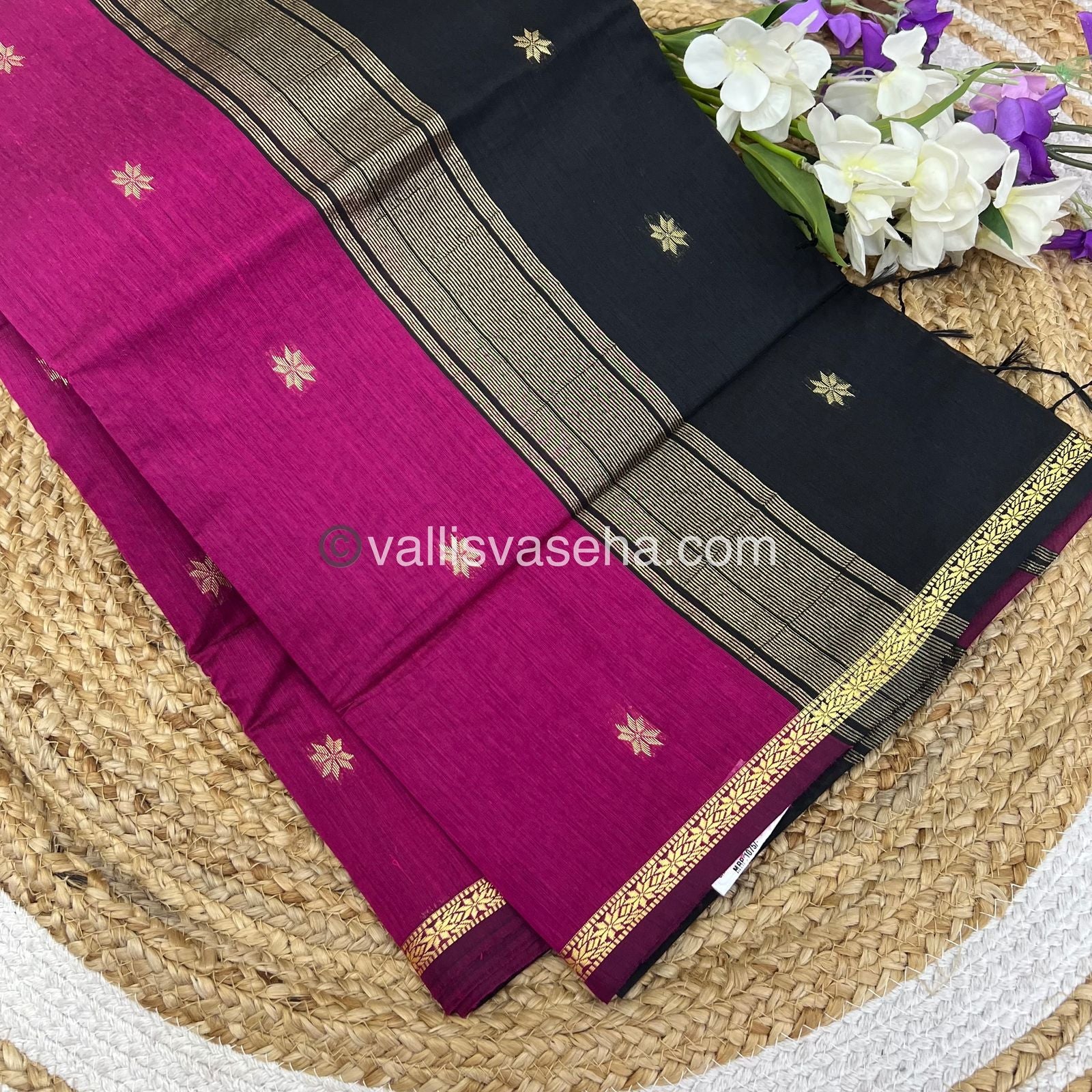 Maheshwari Semi Silk cotton sarees - Light weight Saree , Zari Buttas all over the body , Thin strip of thread border , Contrast Pallu and contrast Blouse .