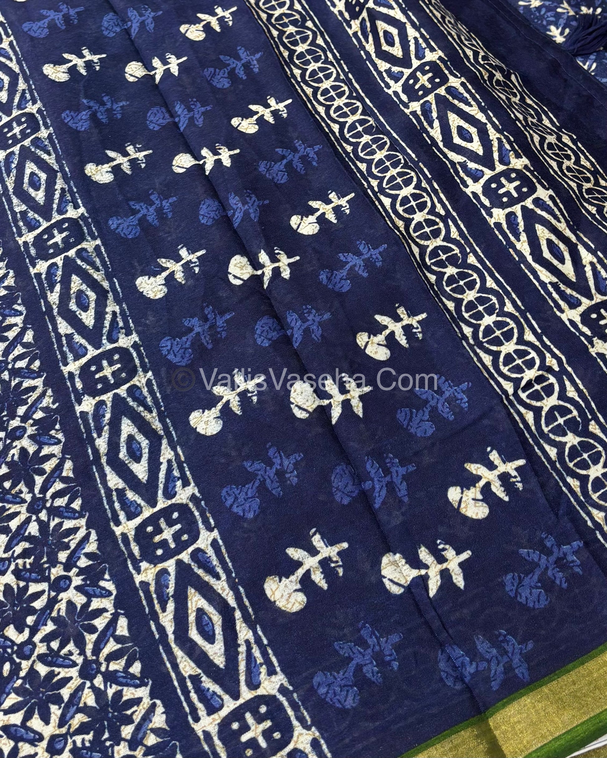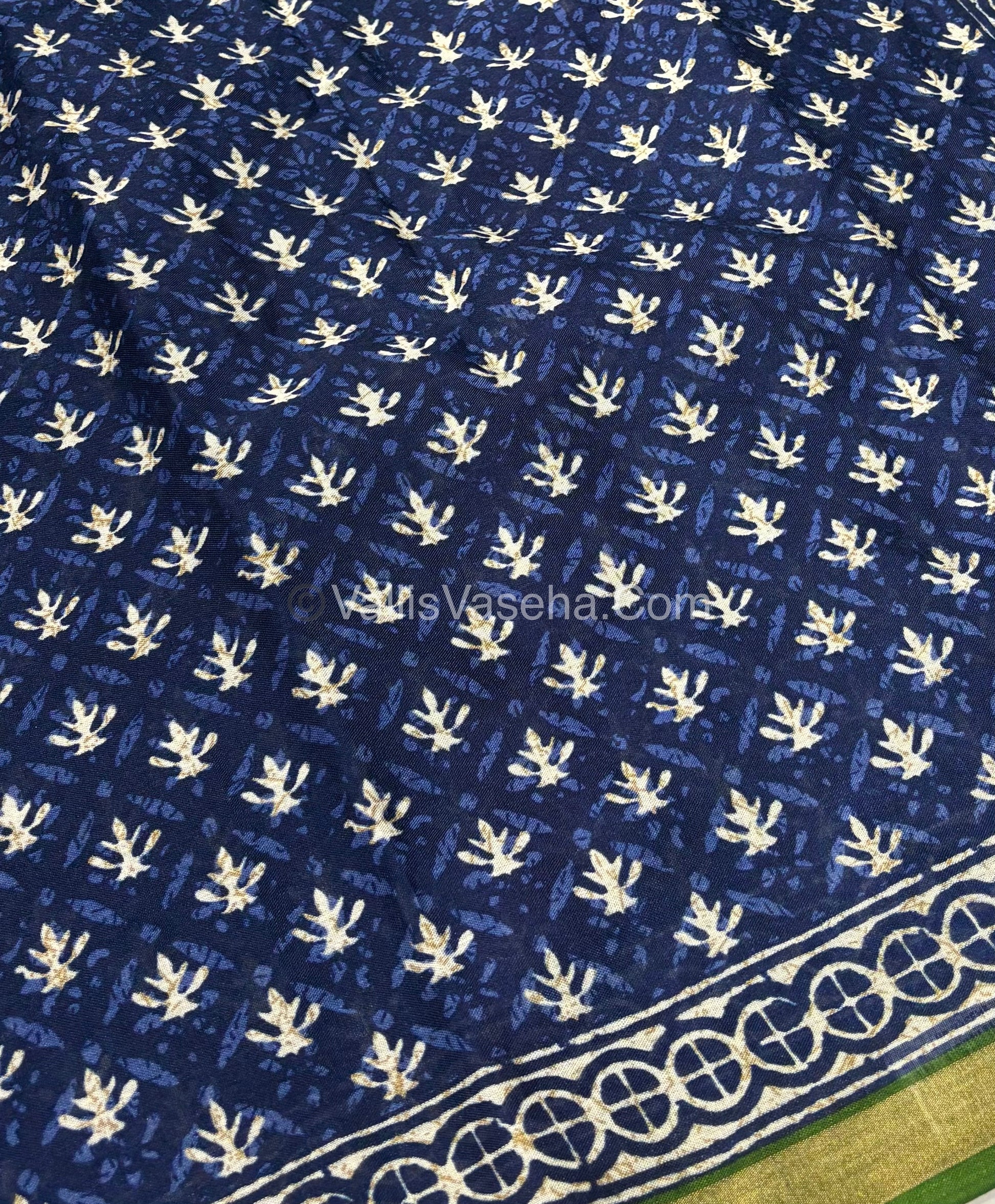Semi Maheshwari Mixed Cotton Saree - Linen Feel - Indigo Blue & Green - VVMSC003