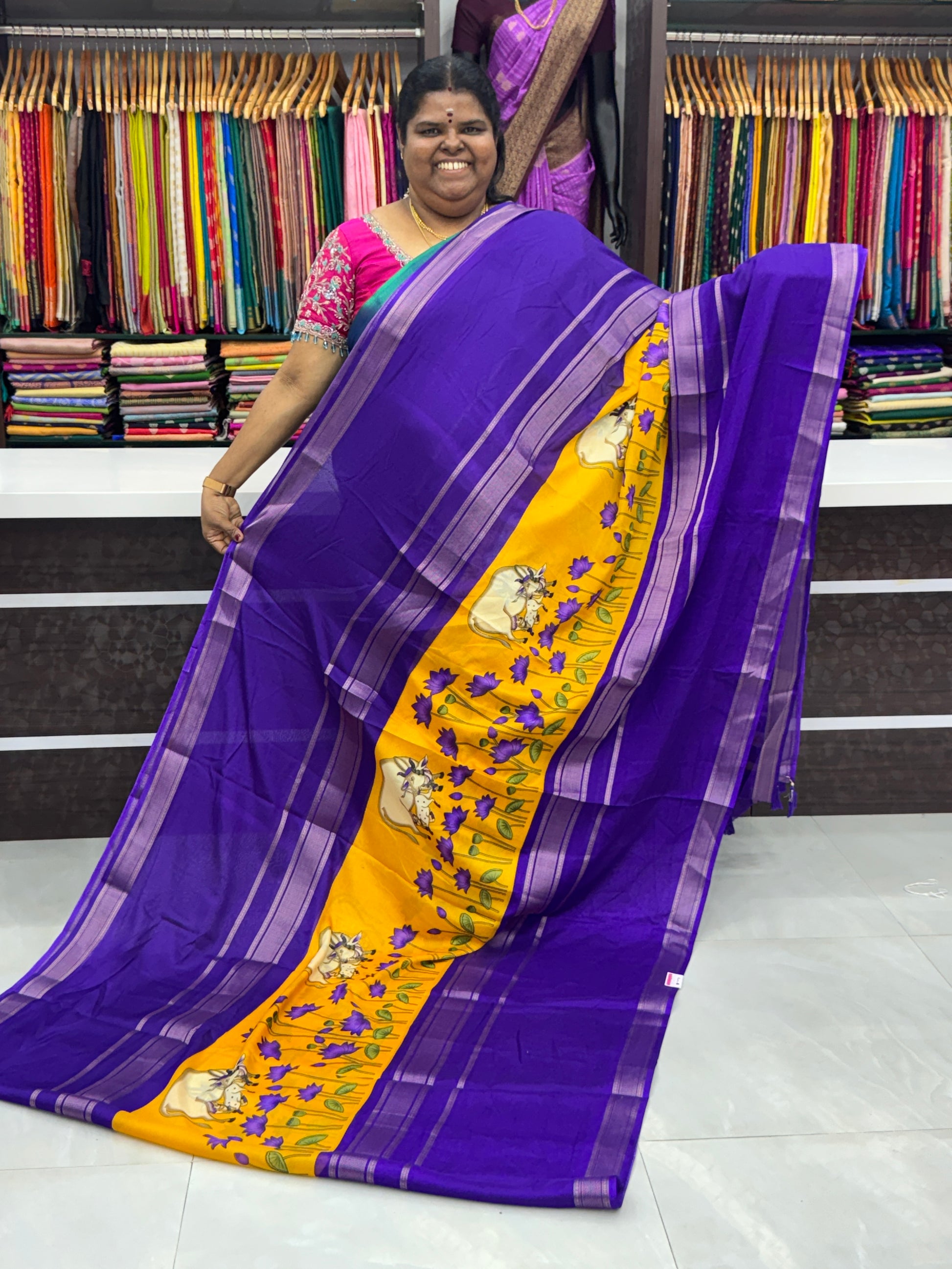 Semi Mysore Crepe Silk variety - Middle Pichwai Print - Both side same borders .