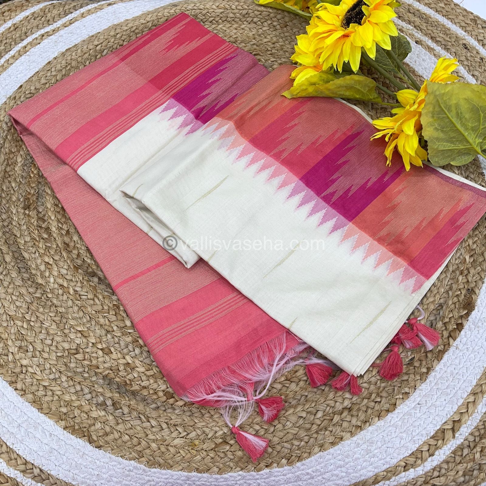 Semi Raw Silk - Half White with Peach Shade - VVRS002