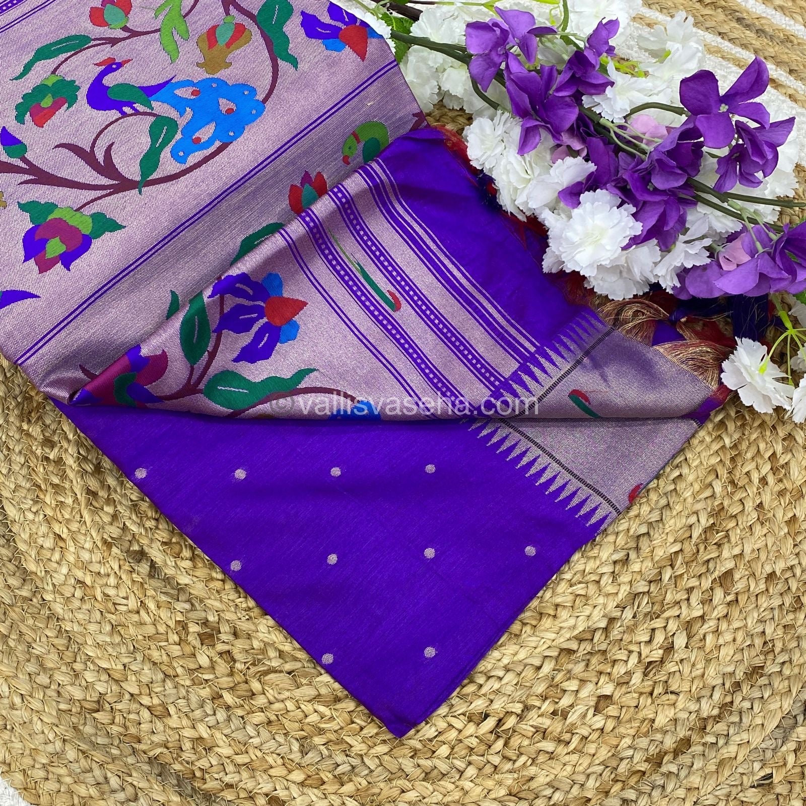 Semi Raw Silk - Paithani Design Weaving - Violetish Purple Shade - VVRS005