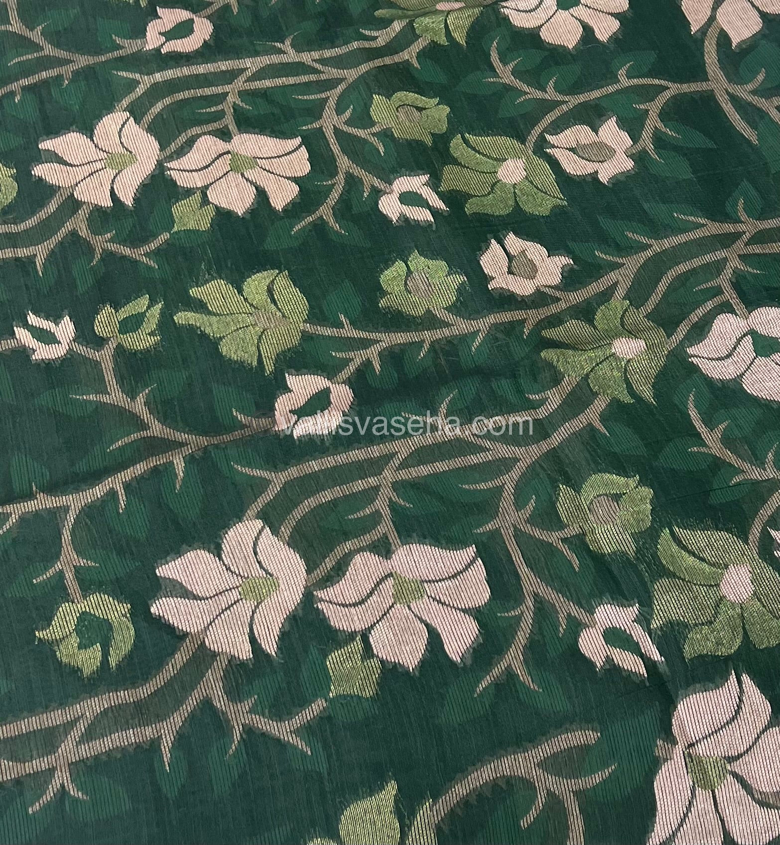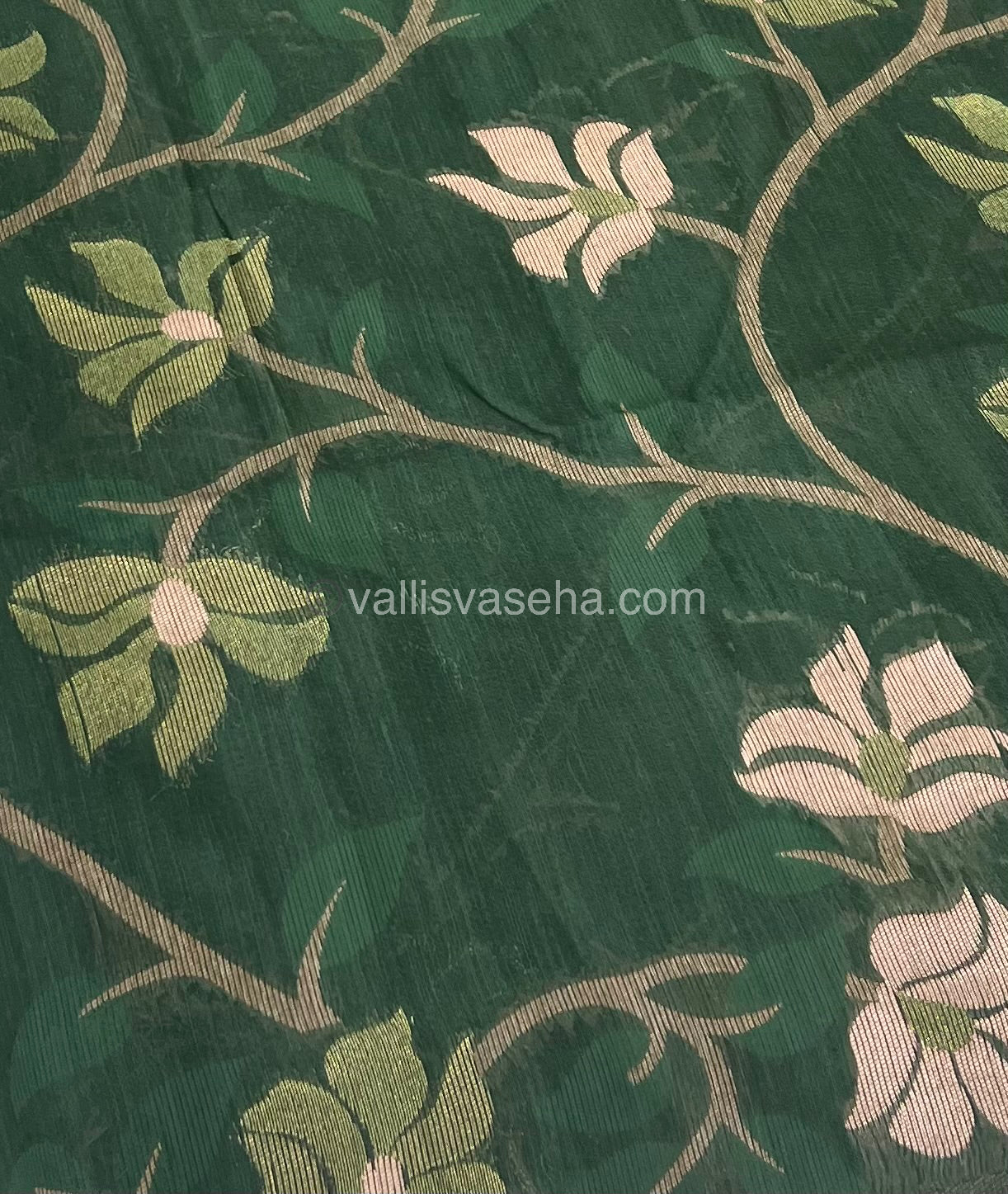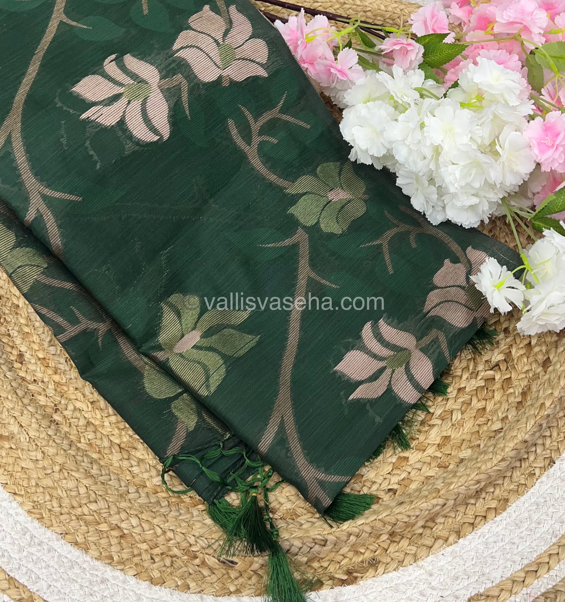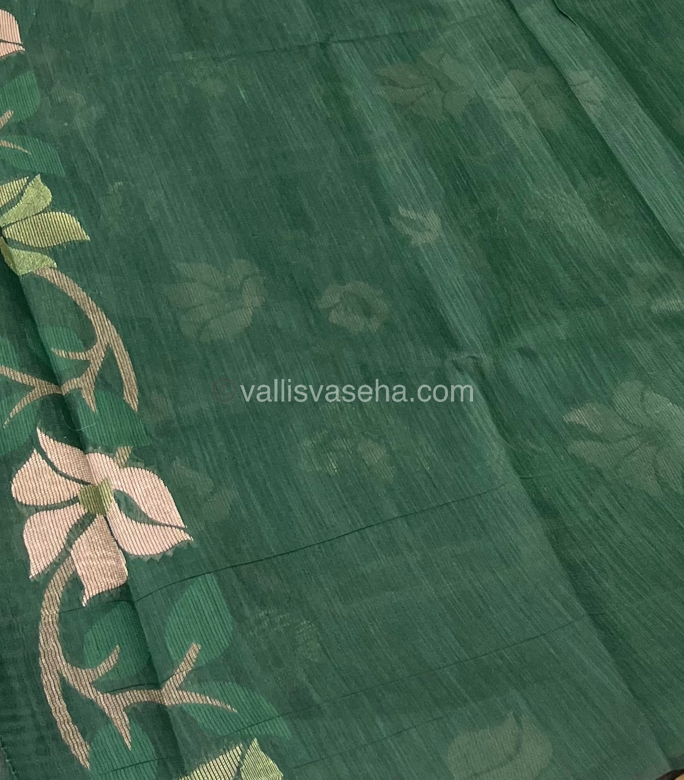 Semi Raw Silk with Jamdhani Design Weaving -Dark green Shade - VVRS001