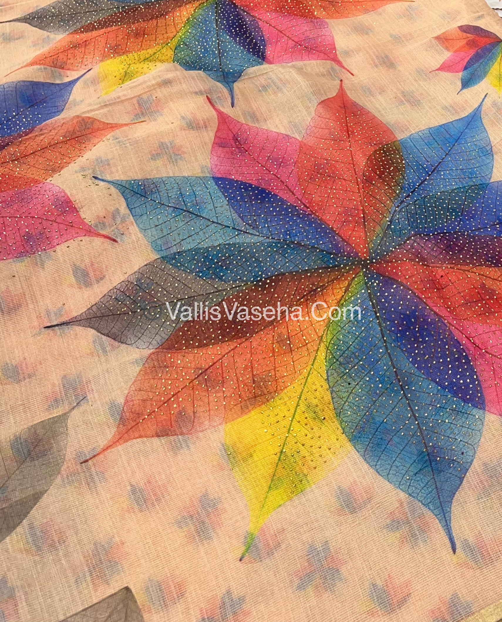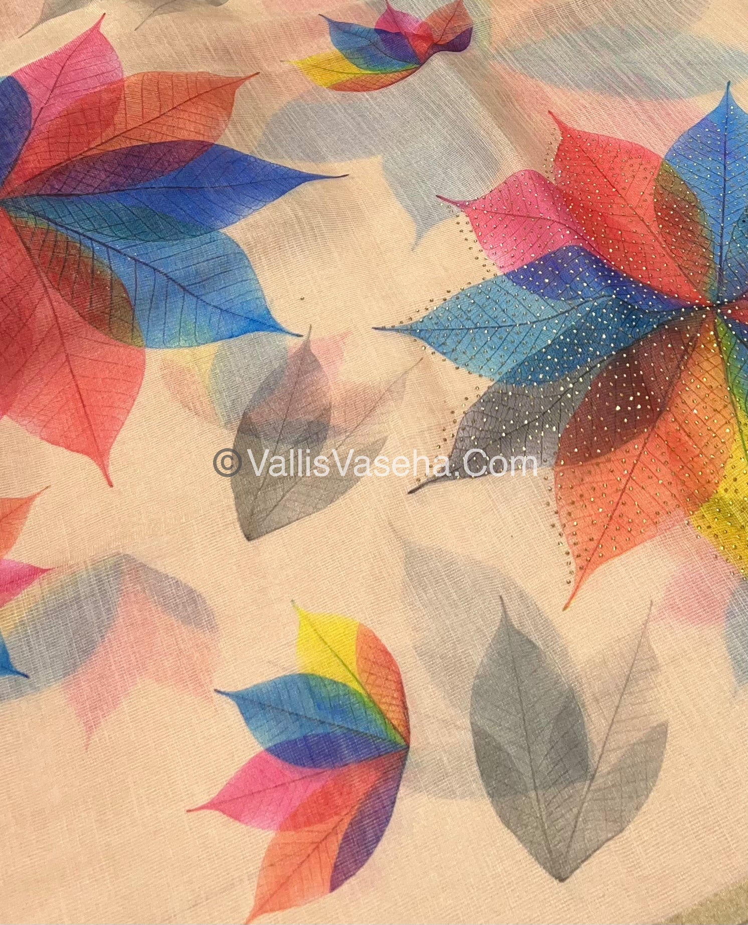 Stunning kota tissue sarees - Stone studded - All over colorful floral butta design & running pallu with tassels, printed blouse design. Occasional / Party wear saree . Good for gifting purpose.