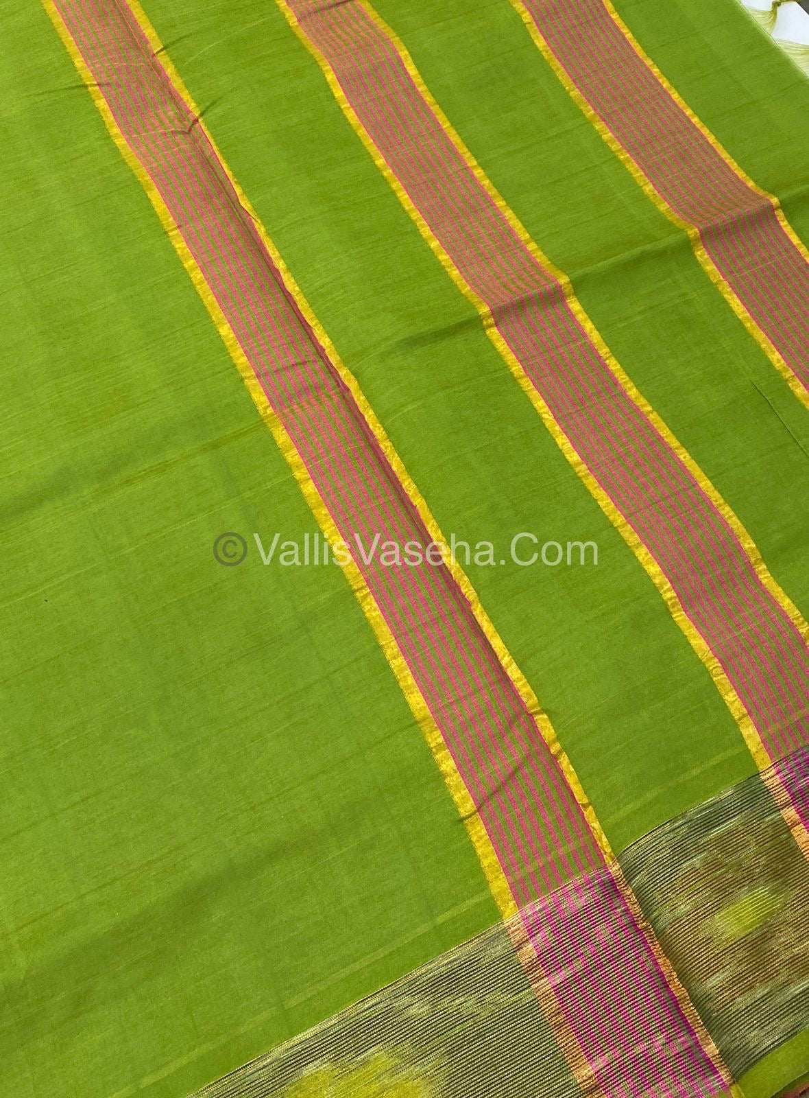Semi Silk Cotton Saree - Pink & Green - VVSSC001