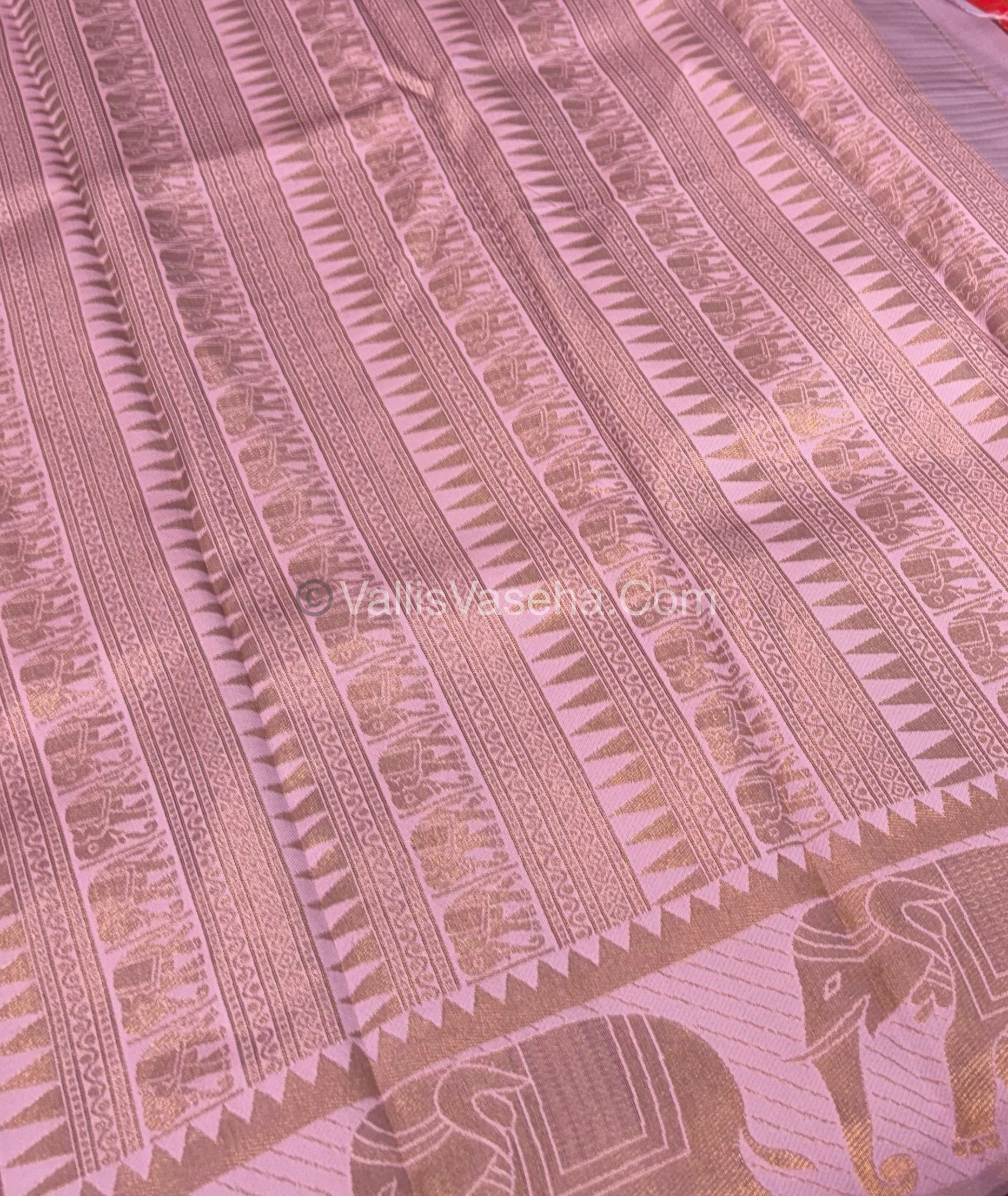 Semi Silk Saree - Kanchi Silk Style - Elephant Border - Black with Pink - VVSSS005