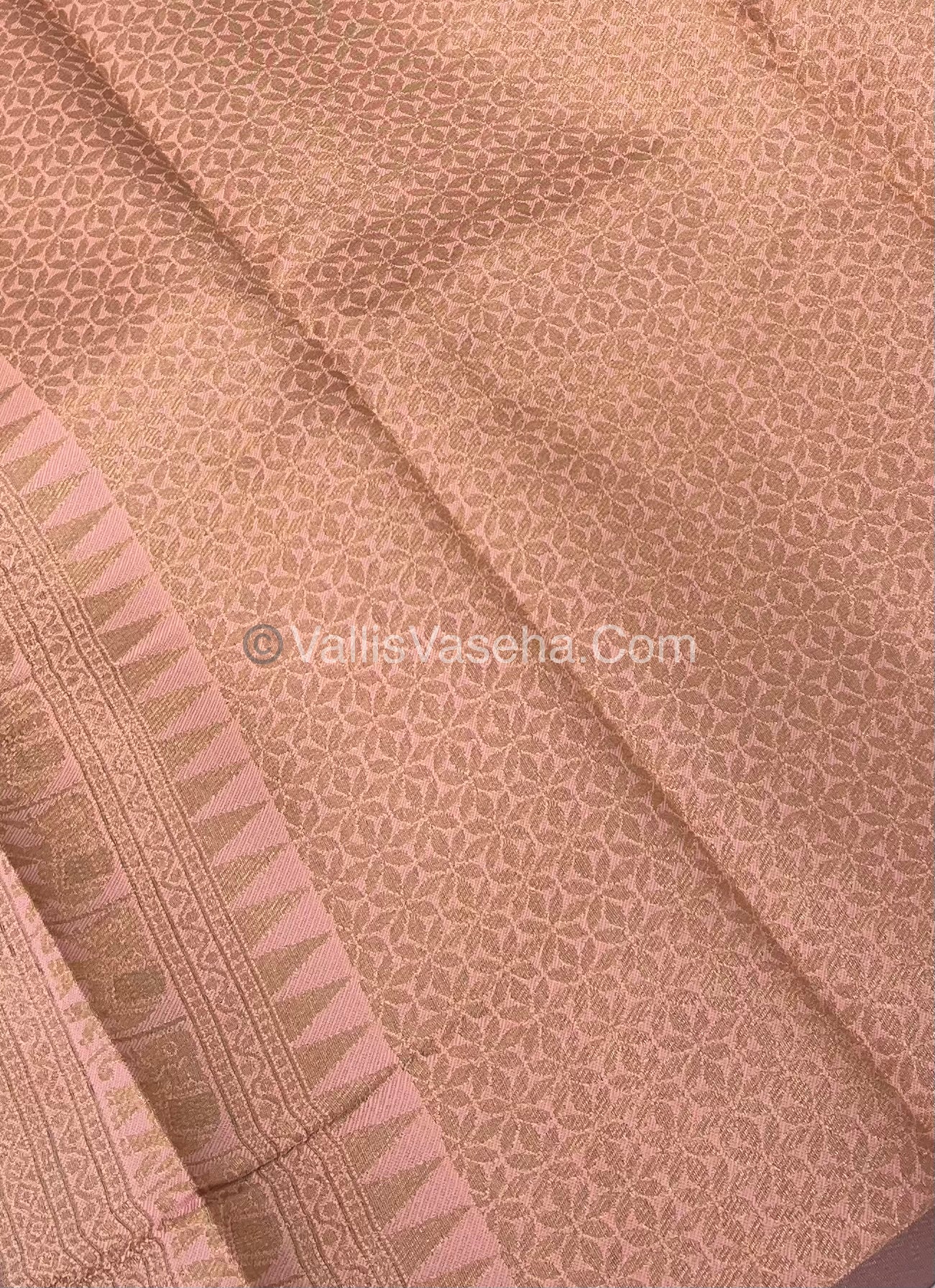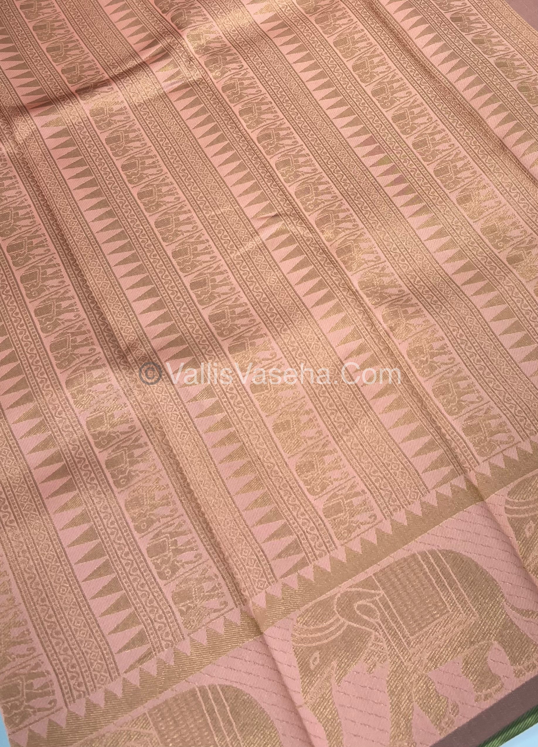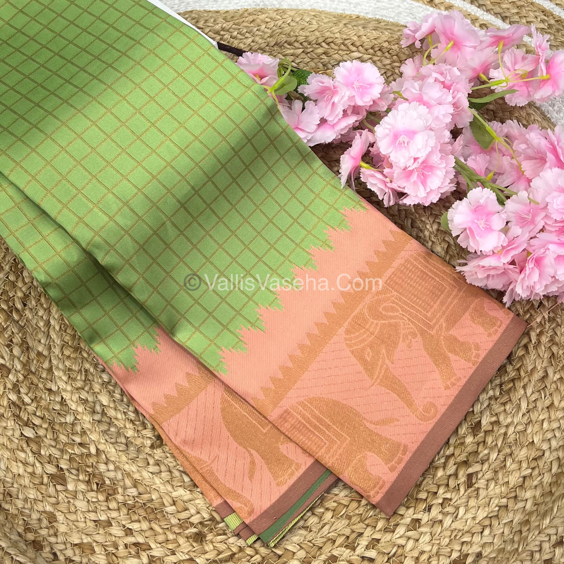 Semi Silk Saree - Kanchi Silk Style - Elephant Border - Pista green with Peach - VVSSS005