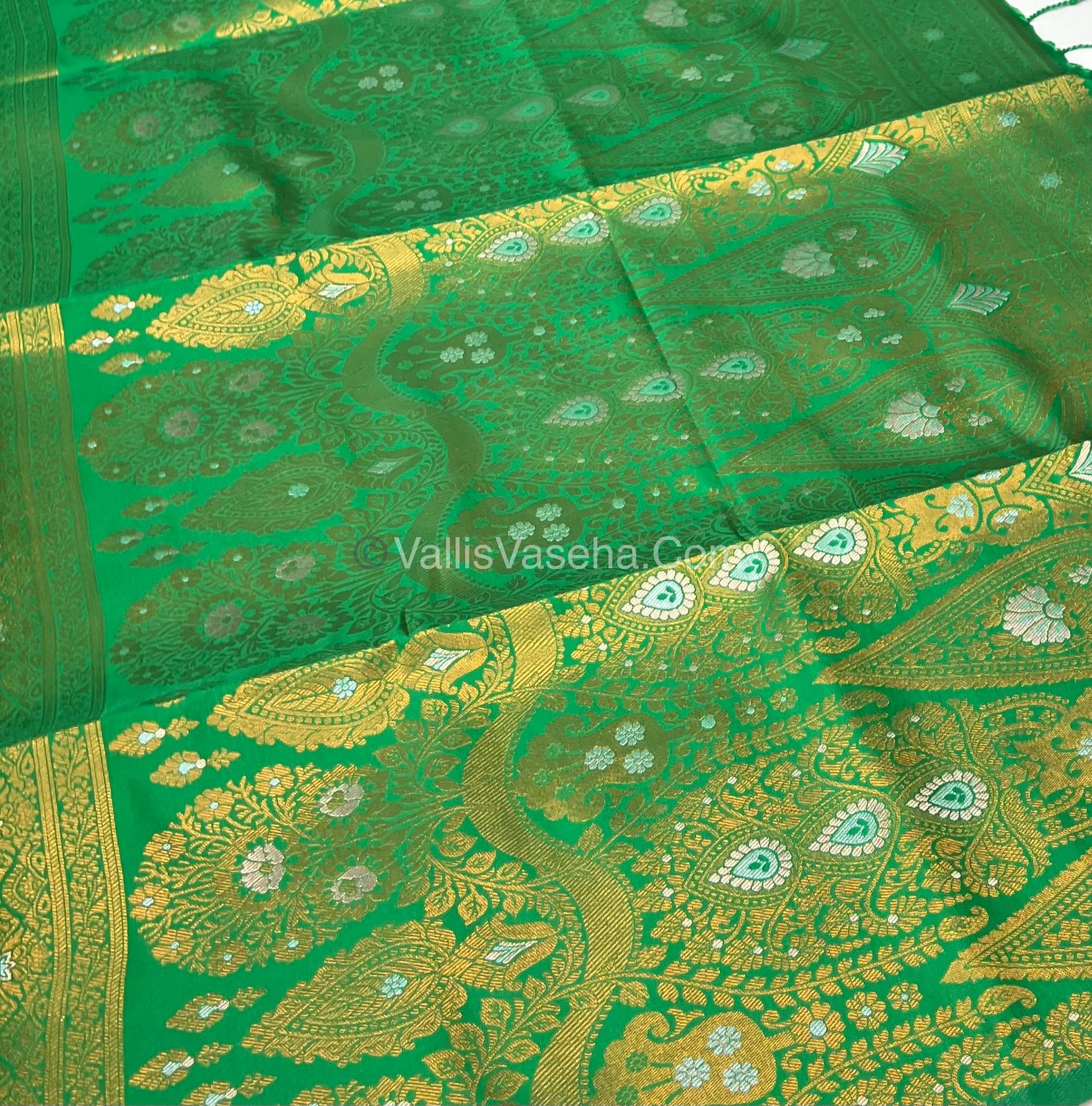 Semi Soft Silk - Border Butta - Green Shade -VVSSS010