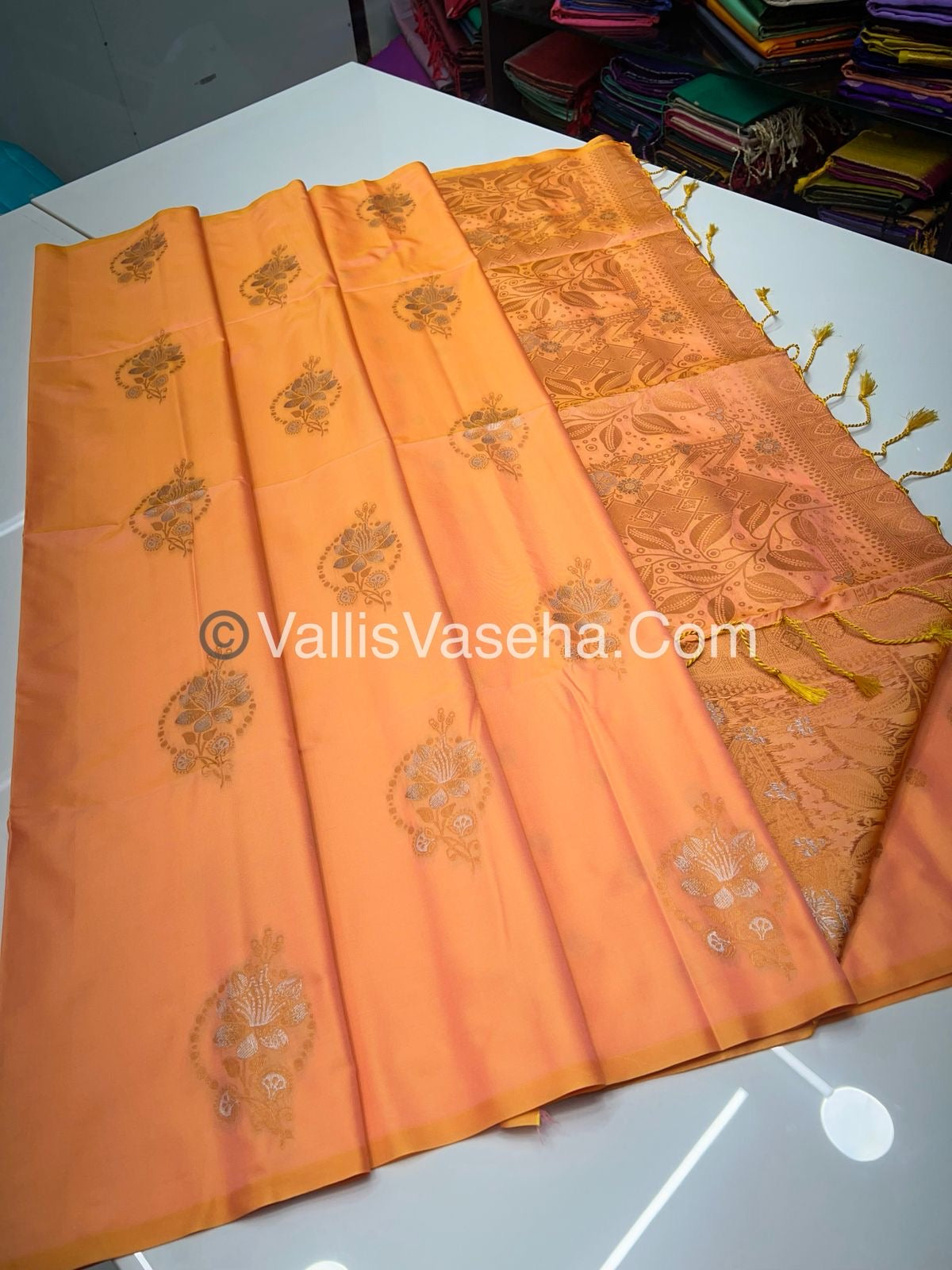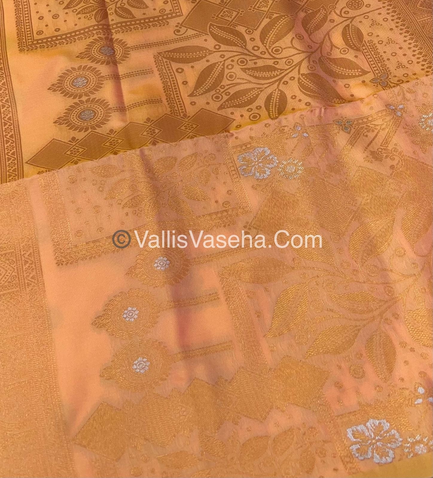 Semi Soft Silk - Border less - Double tone Orangish Yellow Shade -VVSSS007