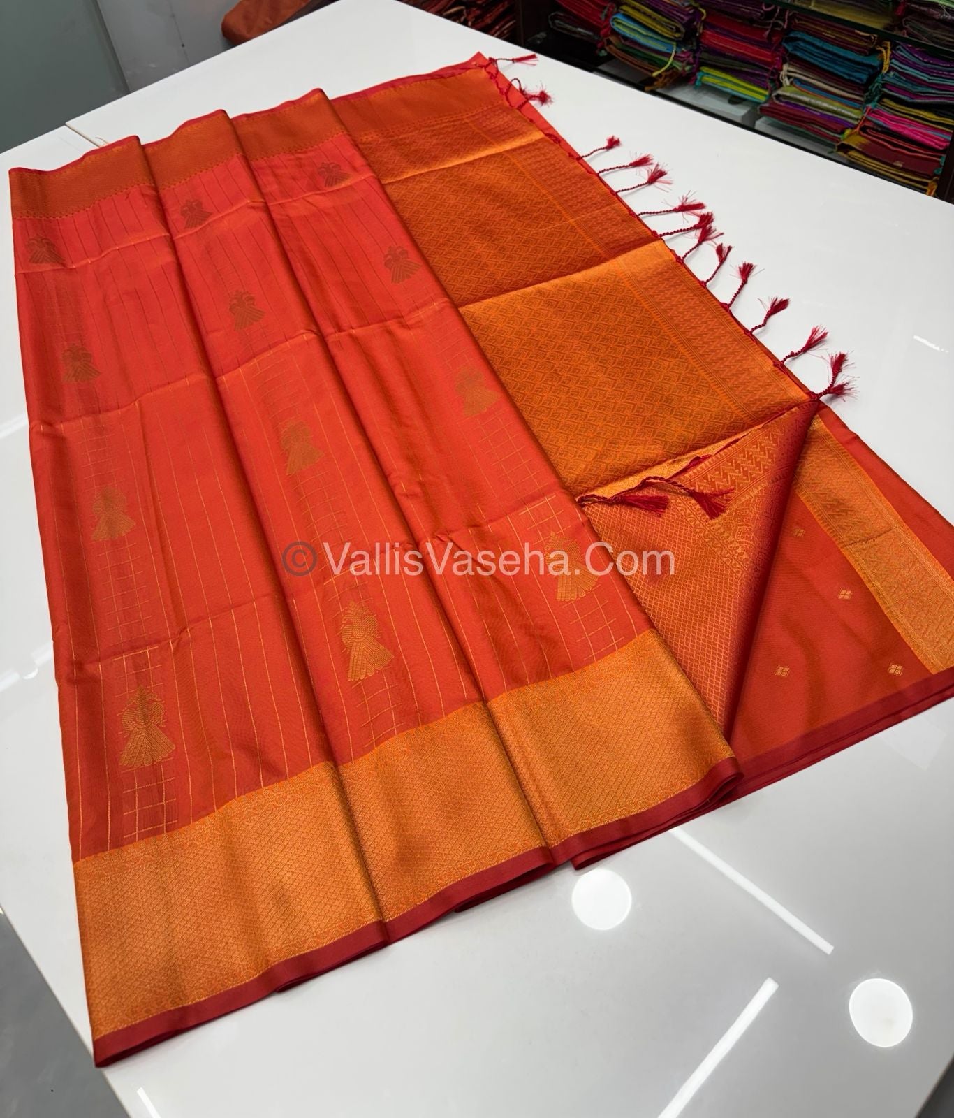 Semi Soft Silk - Border less - Orange Shade -VVSSS023