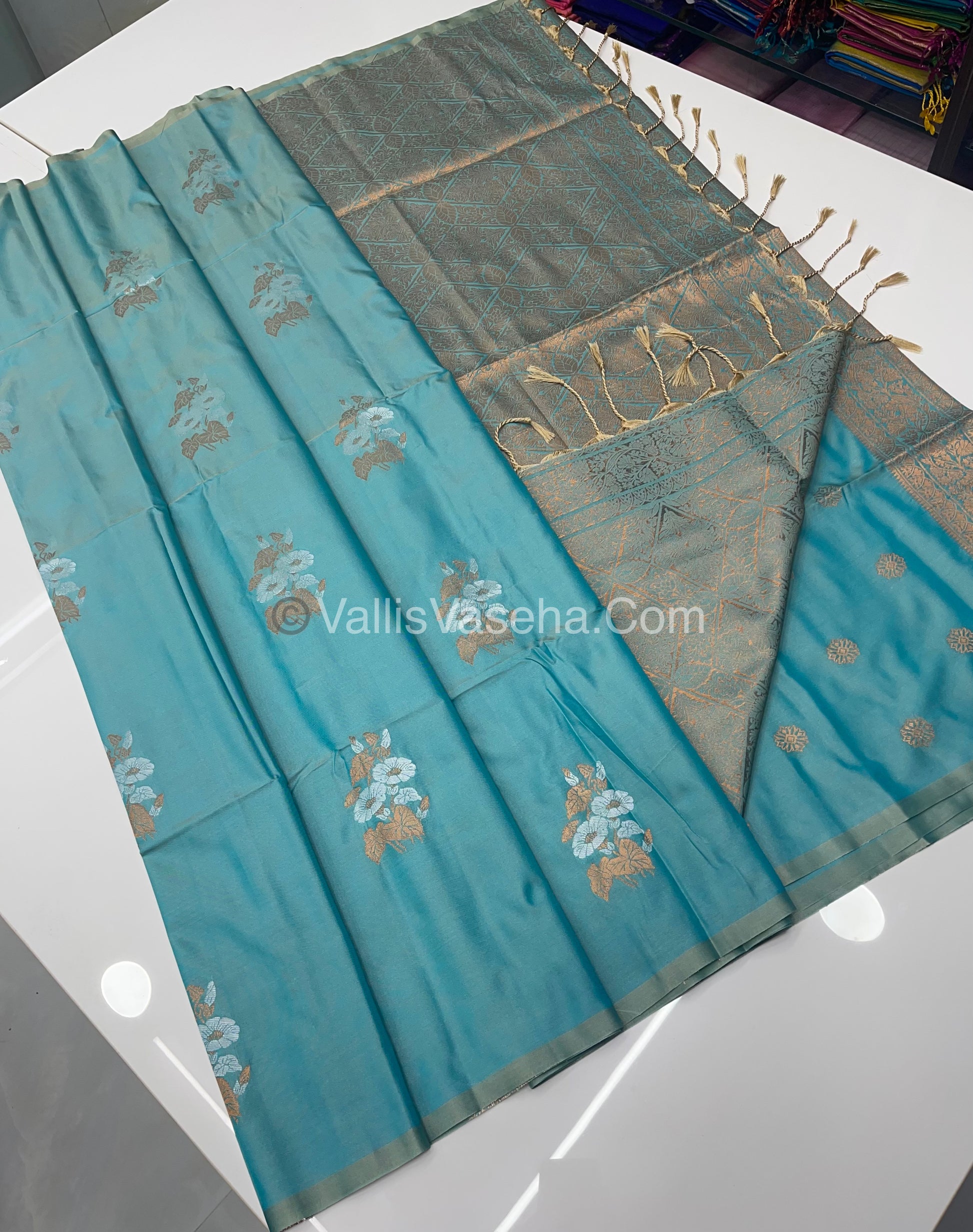 Semi Soft Silk - Border less - Pastel Blue Shade -VVSSS007
