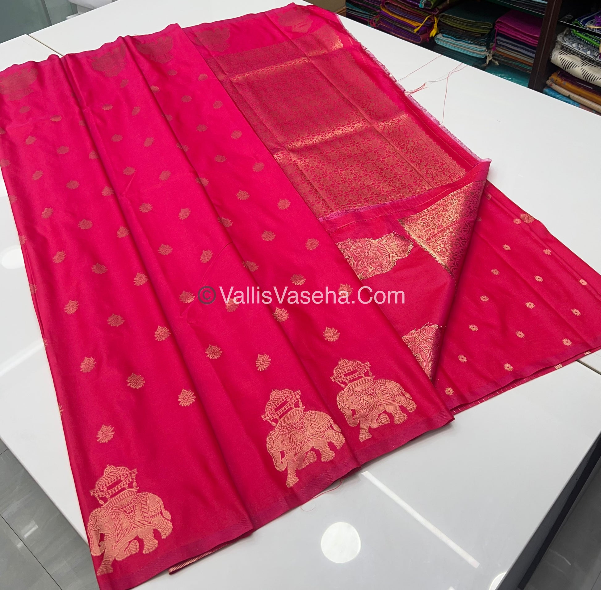 Semi Soft Silk - Elephant Butta Border - Pink Shade -VVSSS011