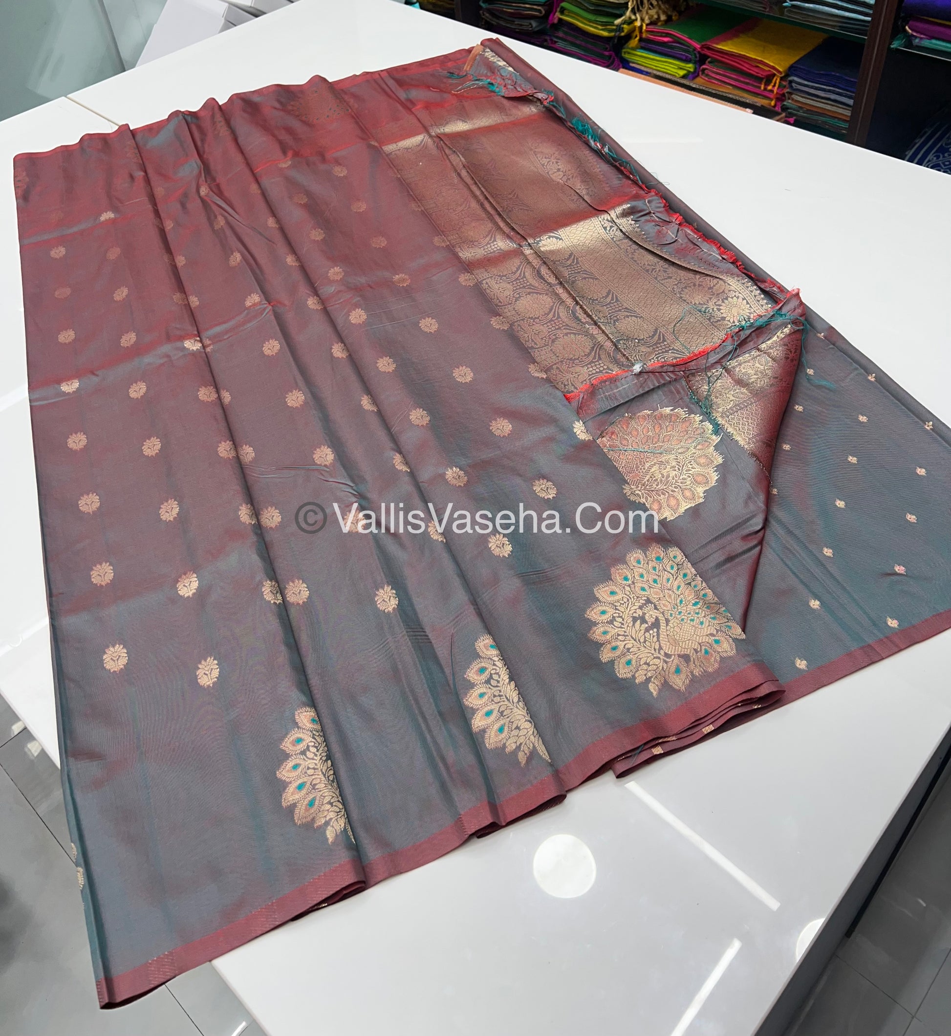 Semi Soft Silk - Peacock Butta Border - Greenish Grey Shade -VVSSS011