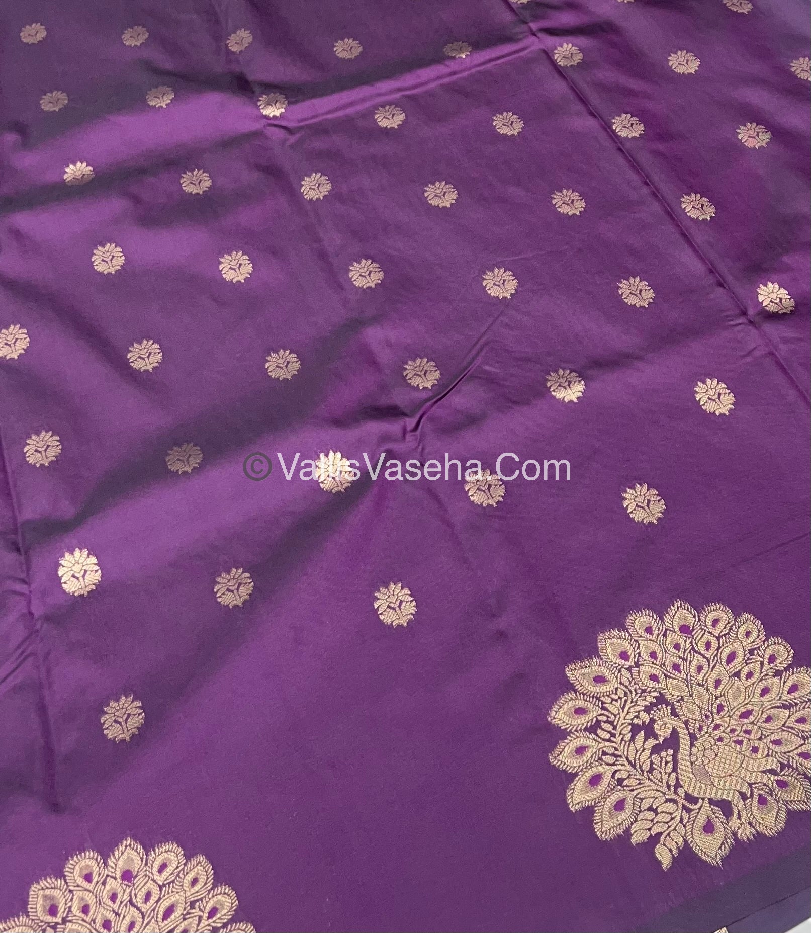 Semi Soft Silk - Peacock Butta Border - Dark Purple Shade -VVSSS011