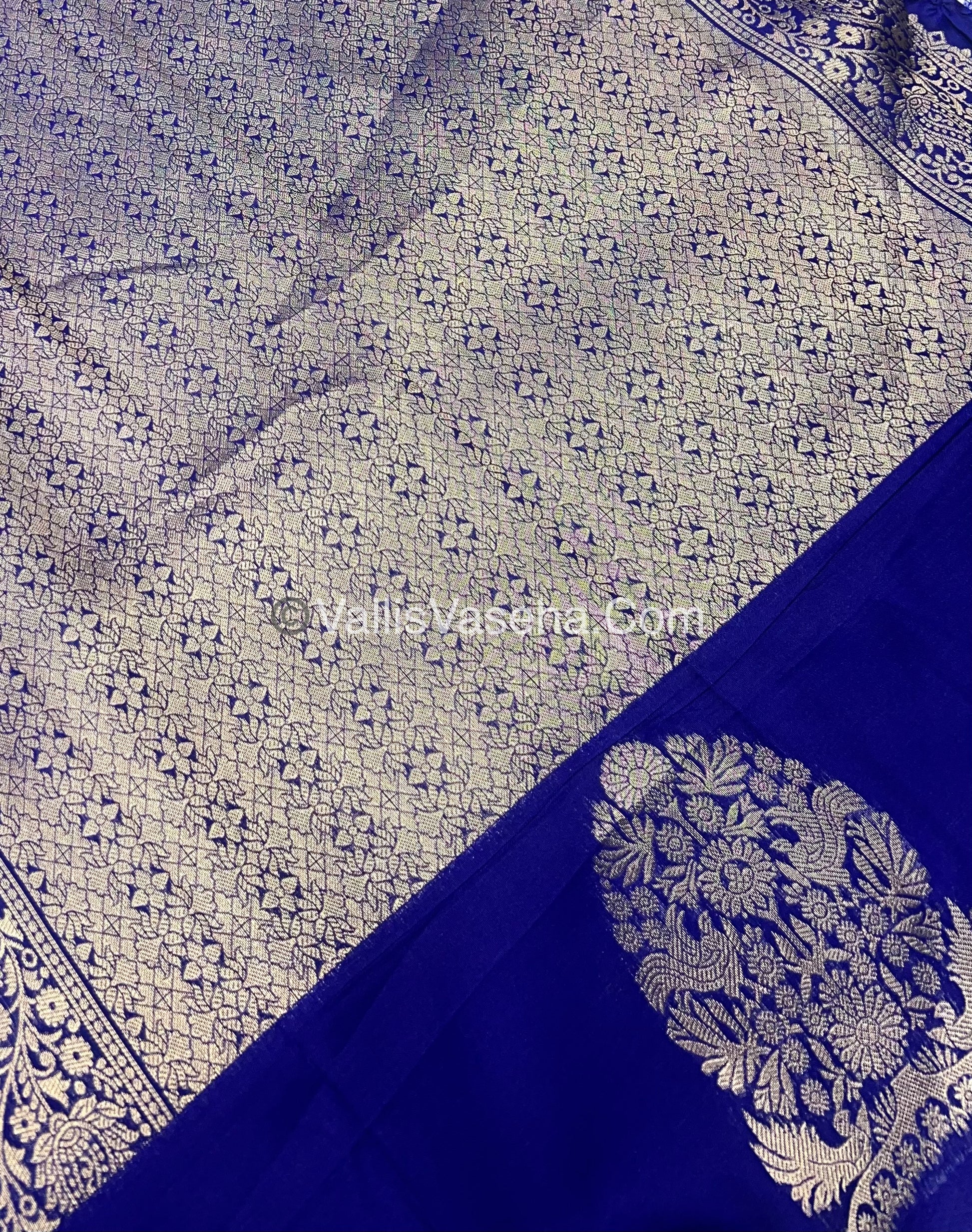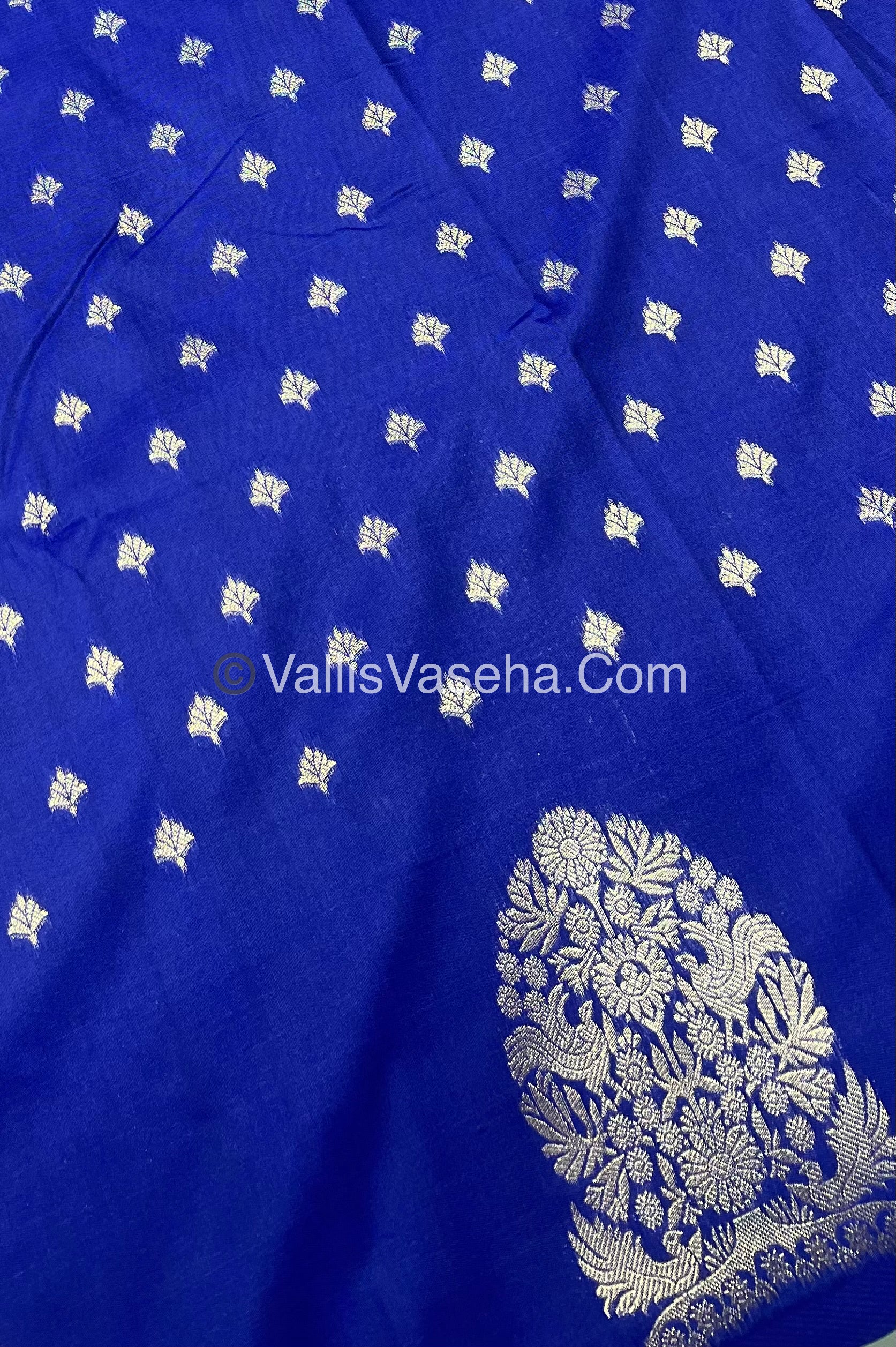 Semi Soft Silk - Tree With Double Birds Butta Border - Blue Shade -VVSSS011