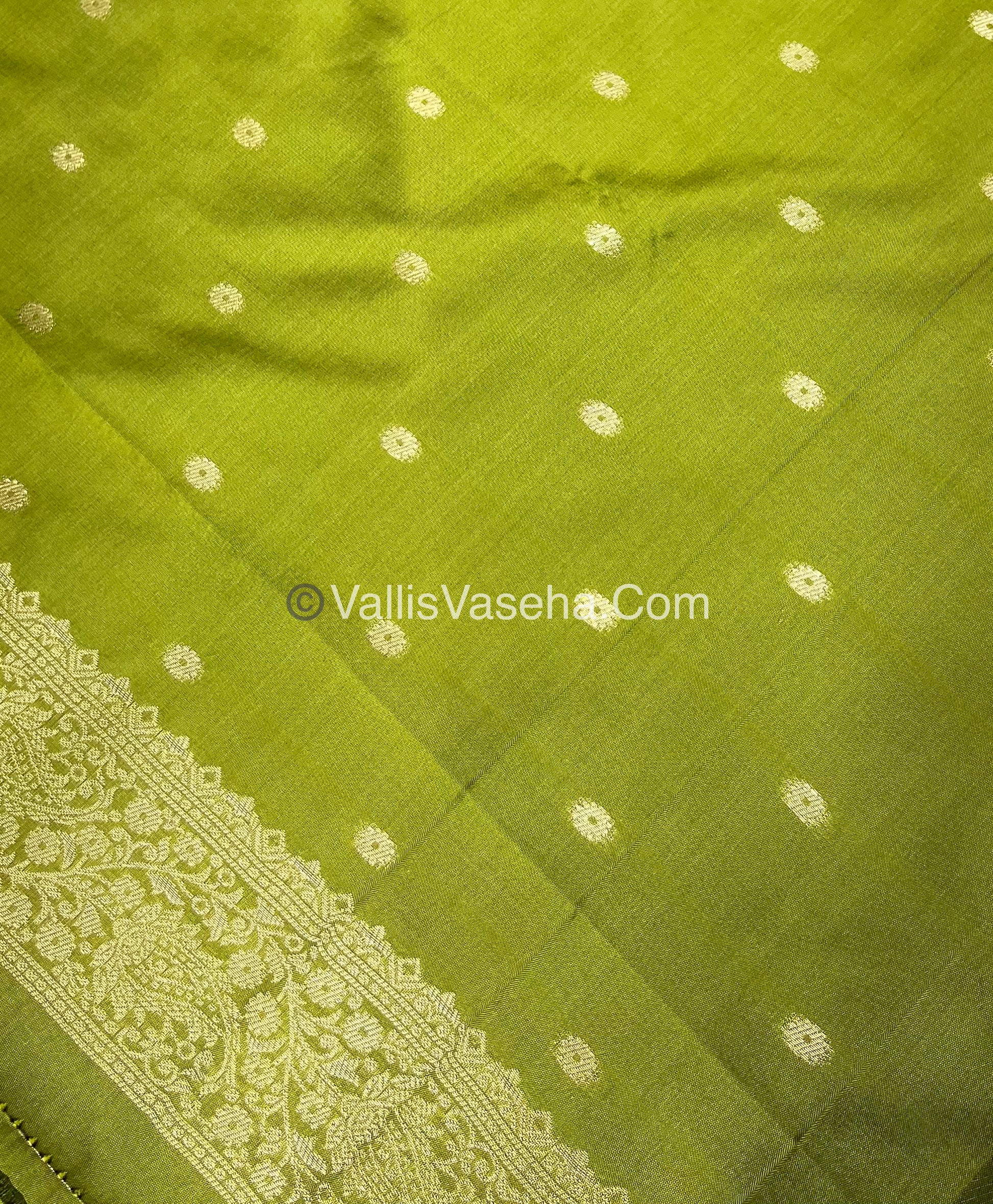 Semi Soft Silk - Tree With Double Birds Butta Border - Green Shade -VVSSS011