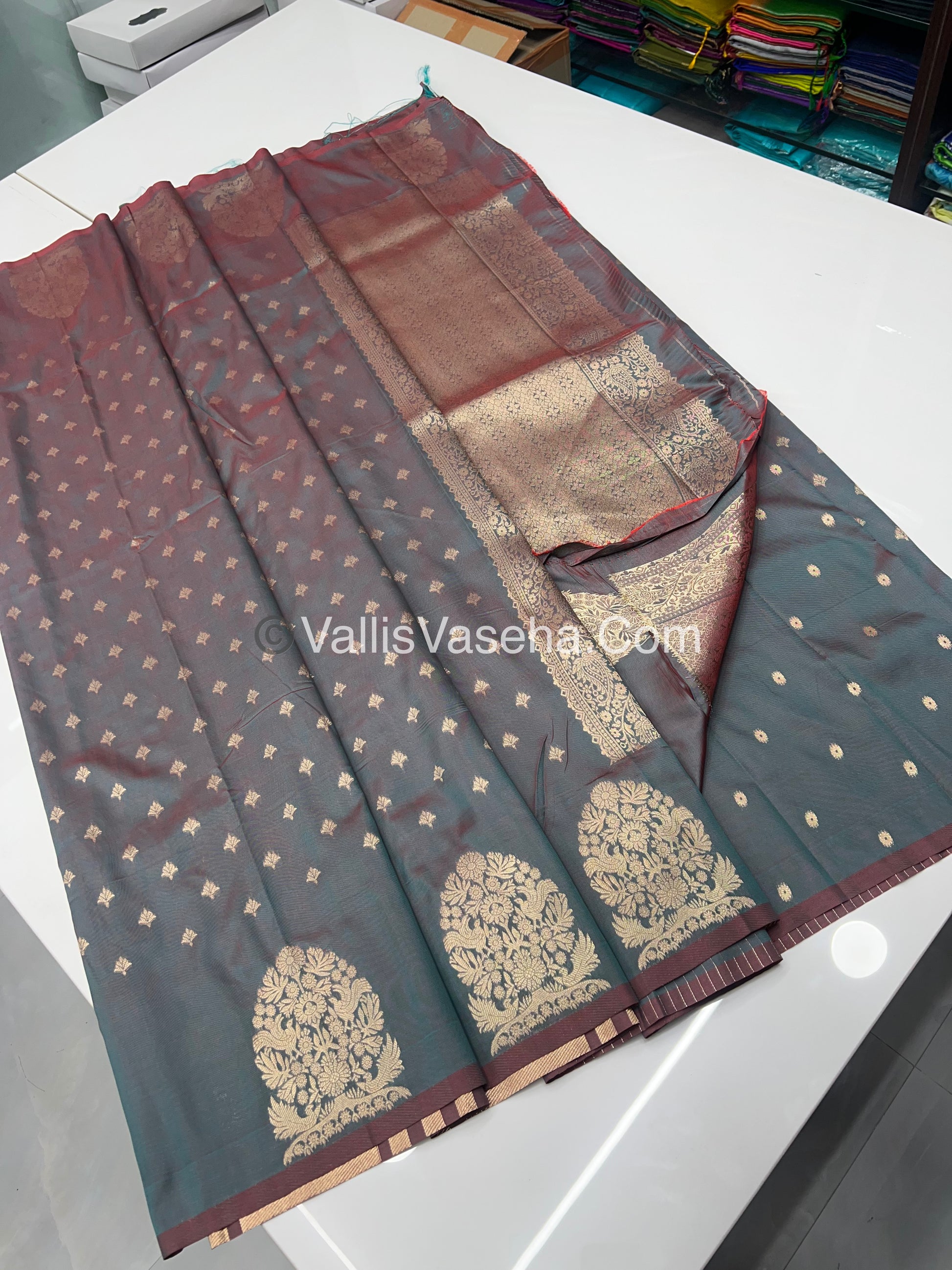 Semi Soft Silk - Tree With Double Birds Butta Border - Greenish Grey Shade -VVSSS011