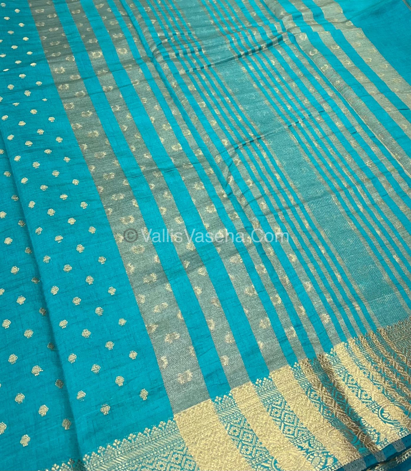 Semi Tussar Silk Saree / Semi Raw Silk Finish and all over Butta design Weaving borders with Straips Pallu and running blouse.