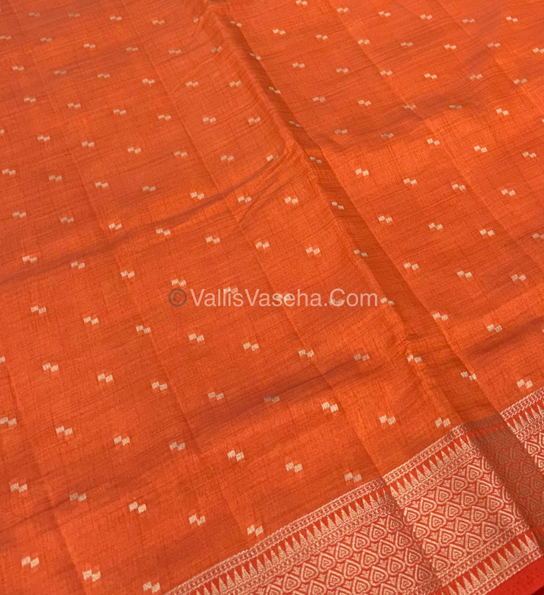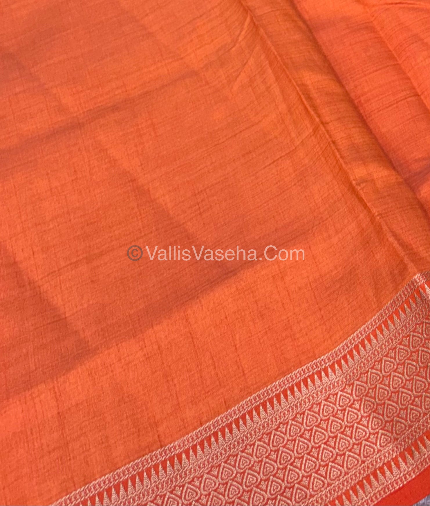 Semi Tussar Silk - Grand Pallu - Orange Shade - VVSTS020