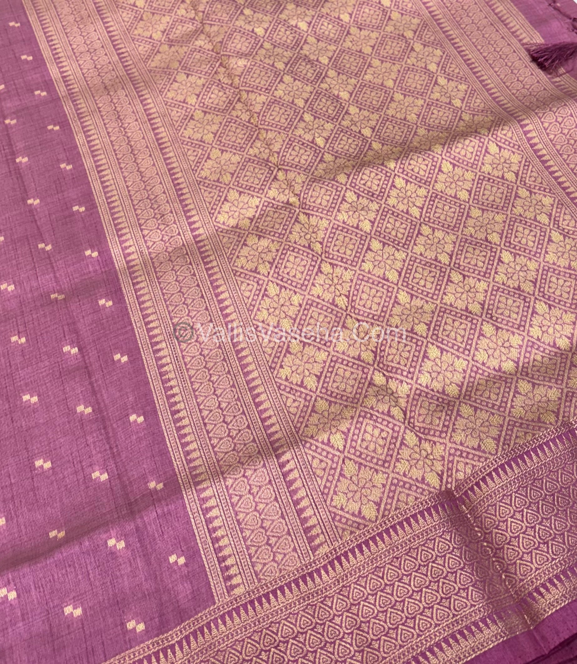 Semi Tussar Silk Saree / Semi Raw Silk Finish - diagonal Zari design butta all over the saree with Zari woven borders , Rich Pallu and Plain blouse wigh border for sleeves