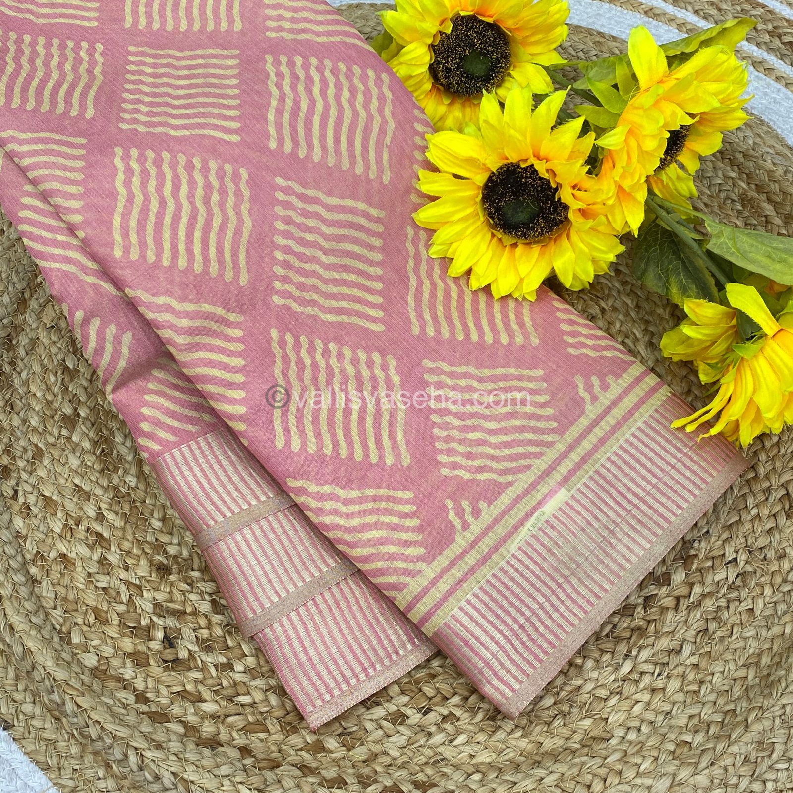 Semi Tussar Silk Saree with tissue finish and all over geometrical design Weaving and stripes borders with stripes Pallu and running blouse.