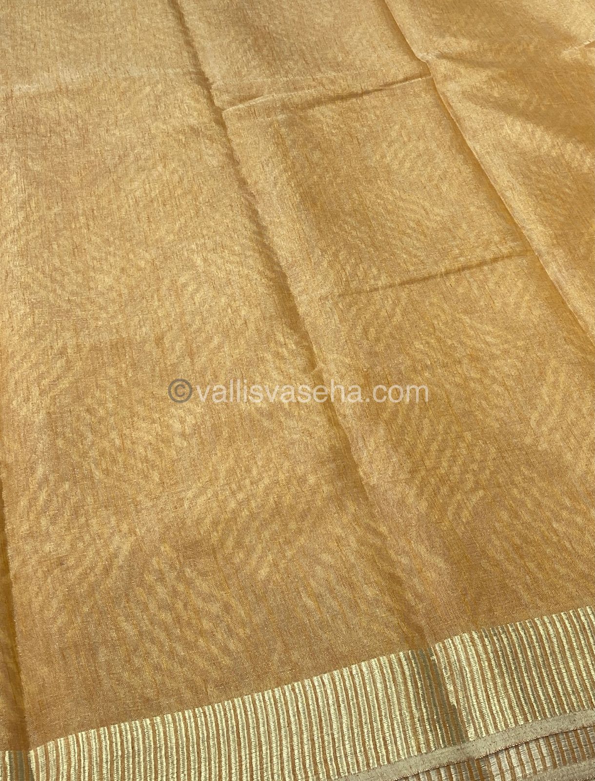 Semi Tussar Silk Saree with tissue finish and all over geometrical design Weaving and stripes borders with stripes Pallu and running blouse.