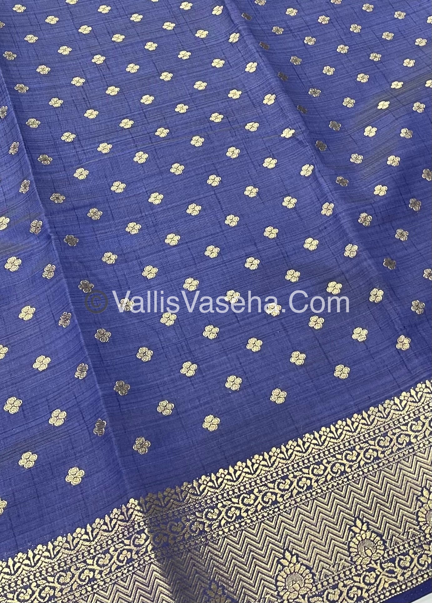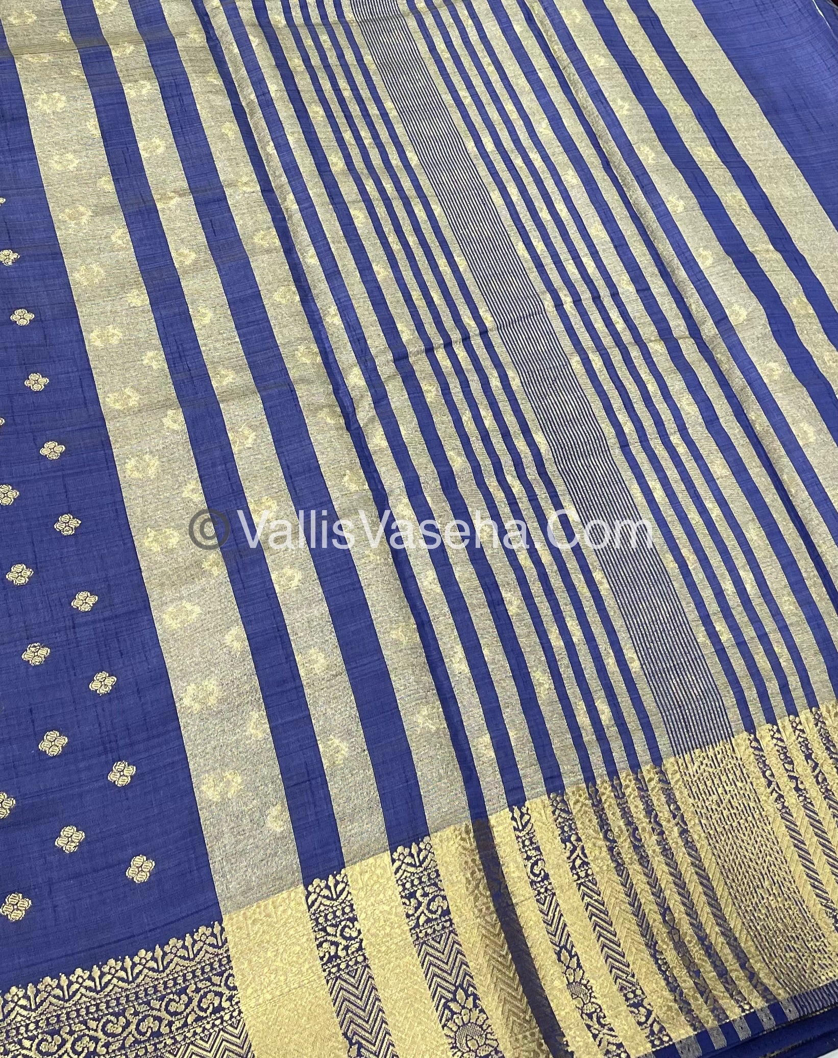Semi Tussar Silk Saree / Semi Raw Silk Finish and all over Butta design Weaving borders with Straips Pallu and running blouse.