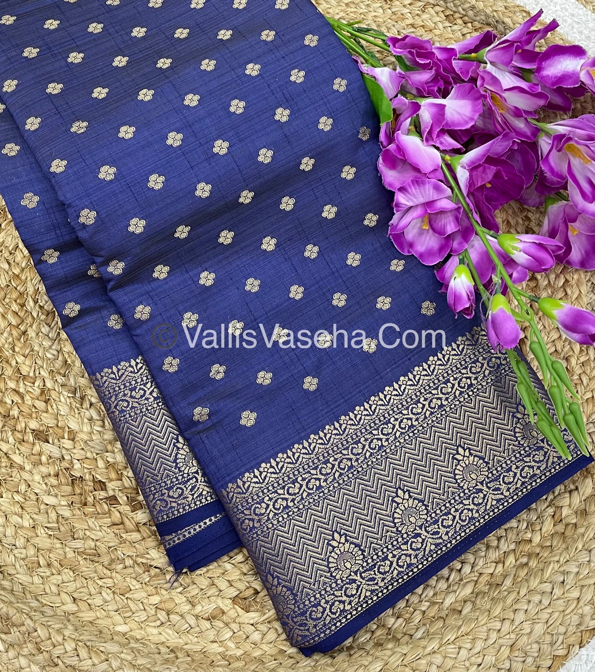 Semi Tussar Silk - Navy Blue Shade - VVSTS015