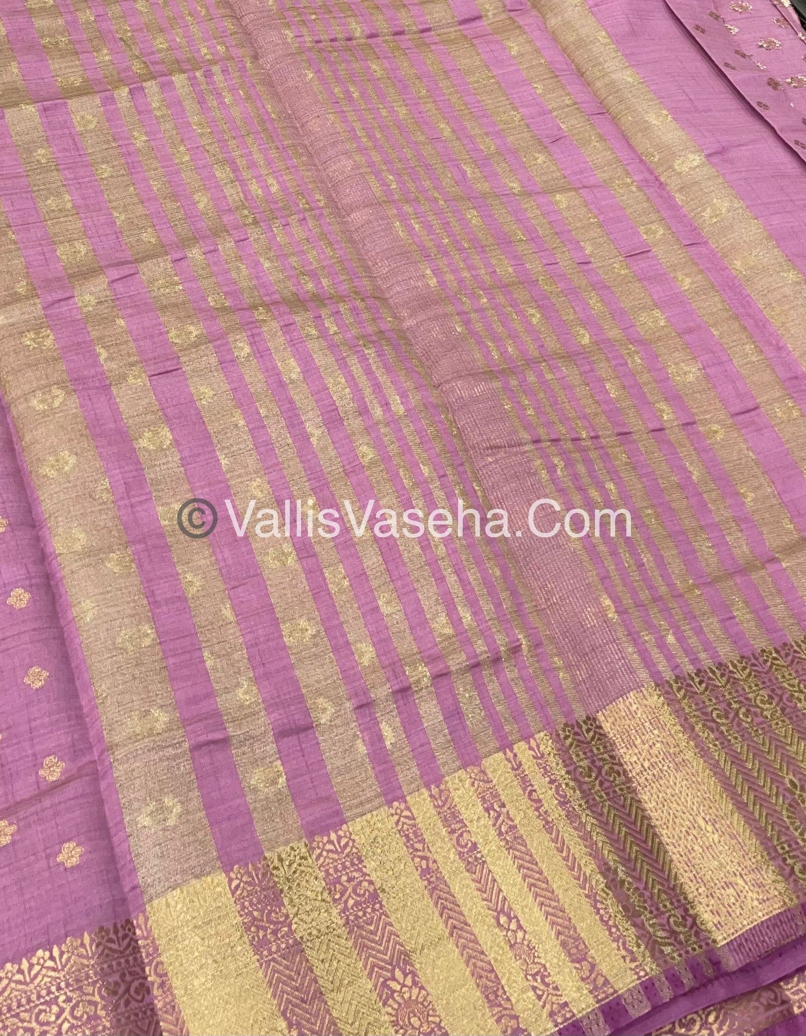 Semi Tussar Silk Saree / Semi Raw Silk Finish and all over Butta design Weaving borders with Straips Pallu and running blouse.