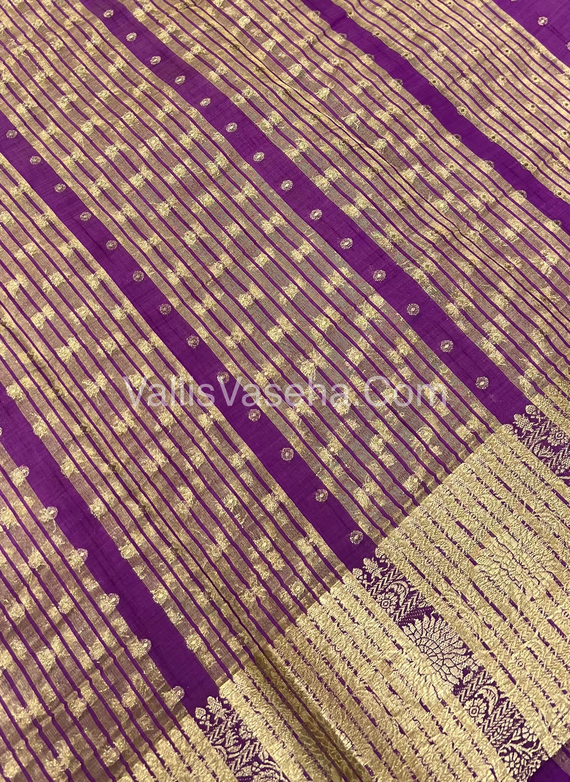 Semi Tussar Silk Saree / Semi Raw Silk Finish and all over small Butta design Weaving borders with Straips Pallu and running blouse.