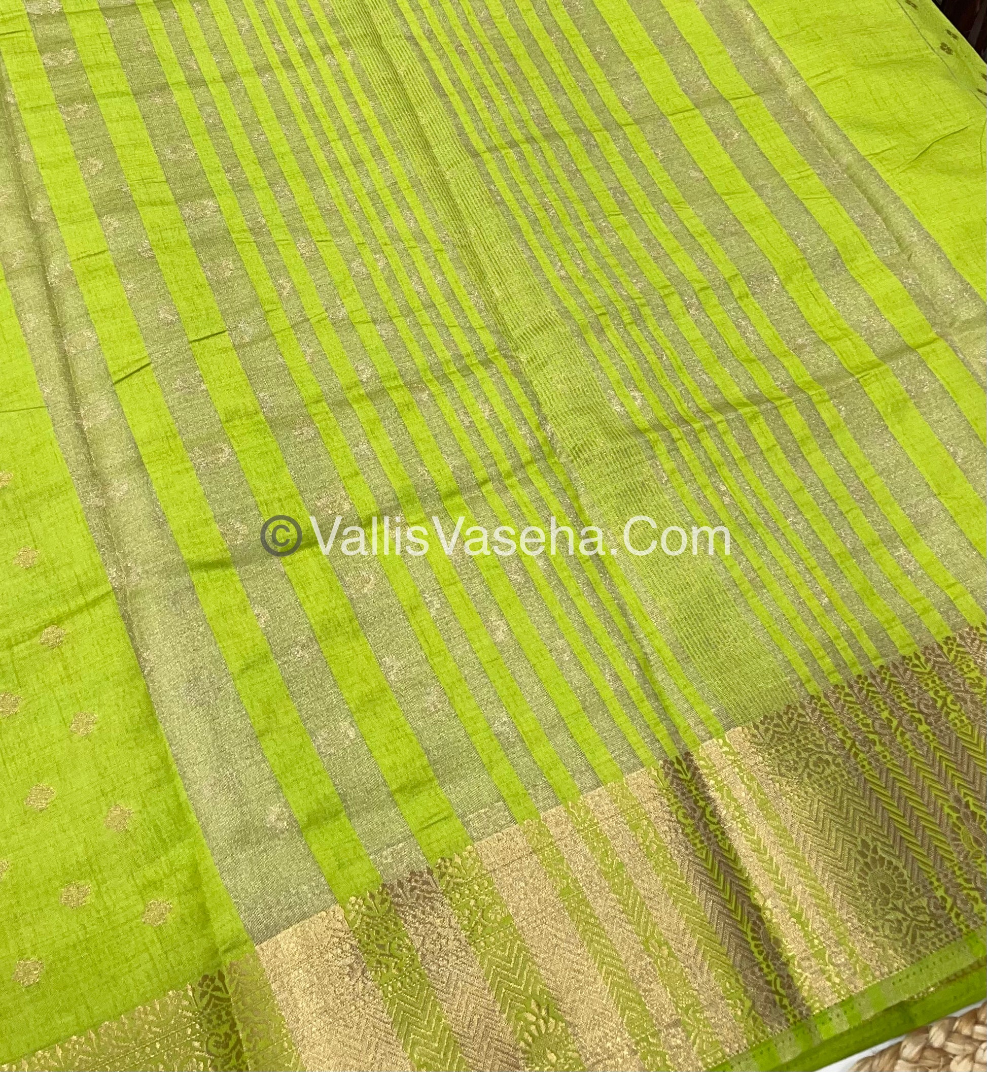 Semi Tussar Silk Saree / Semi Raw Silk Finish and all over Butta design Weaving borders with Straips Pallu and running blouse.