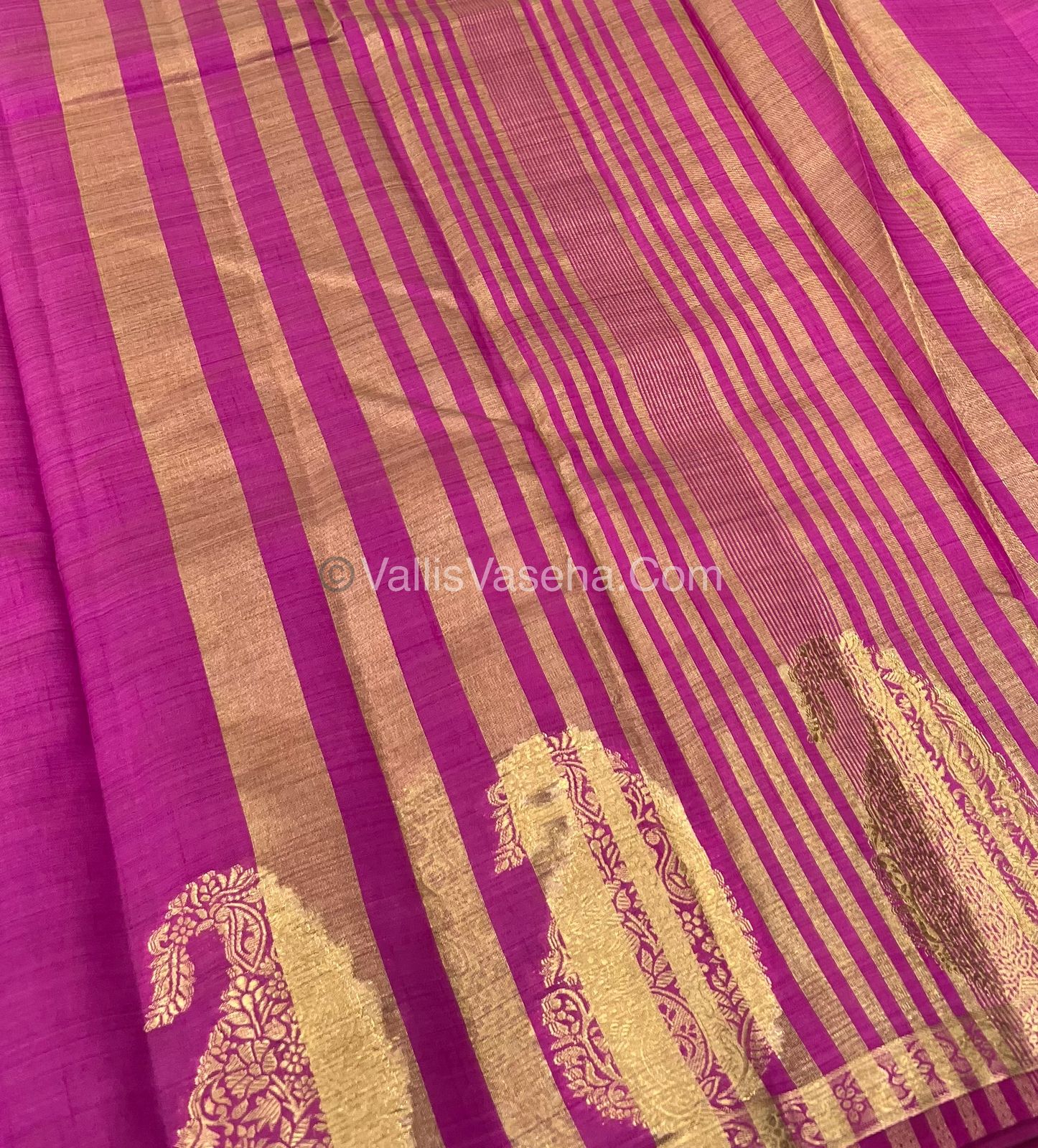 Semi Tussar Silk Saree / Semi Raw Silk Finish and all over border Mango design Weaving borders with Straips Pallu and running blouse.