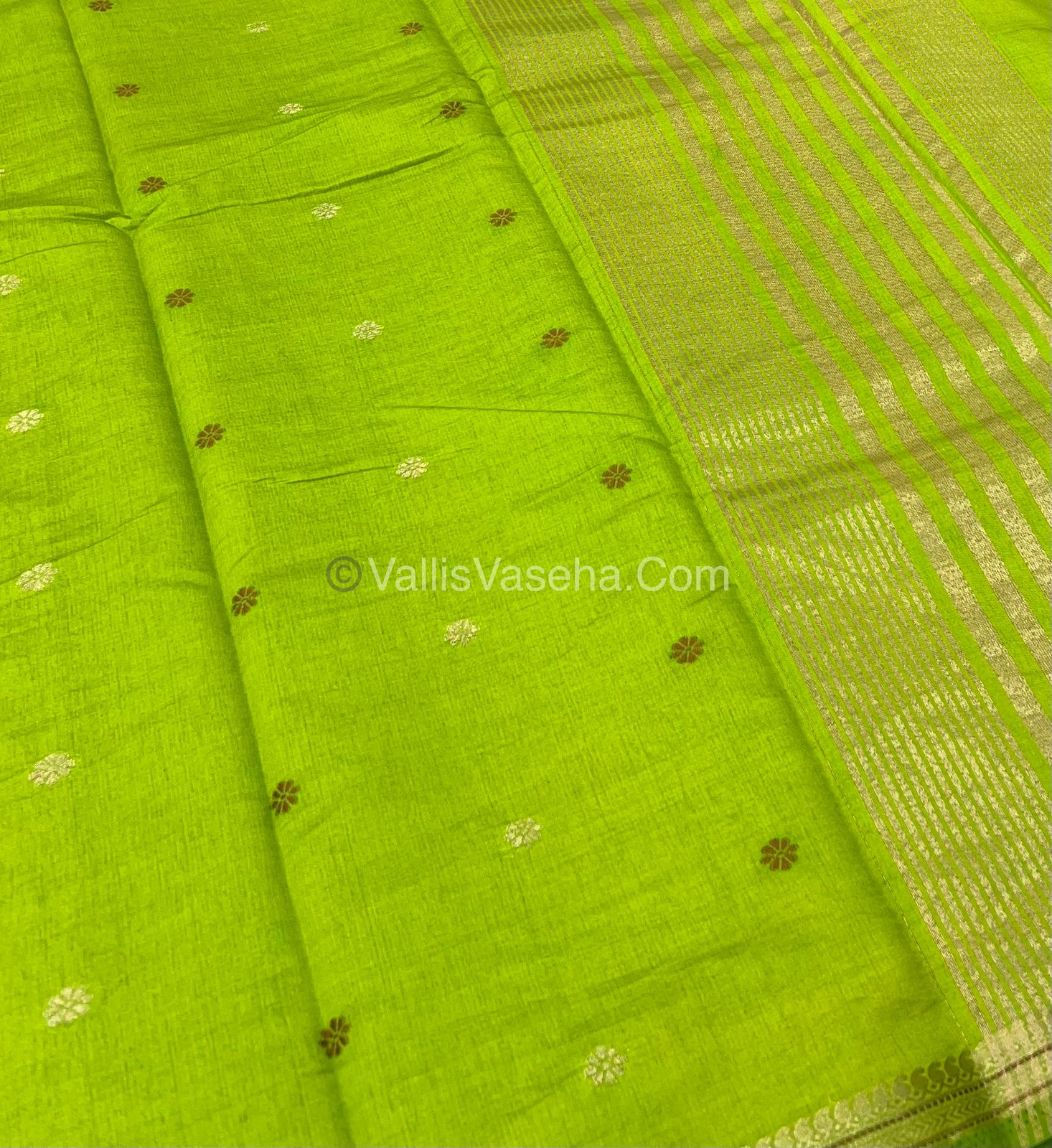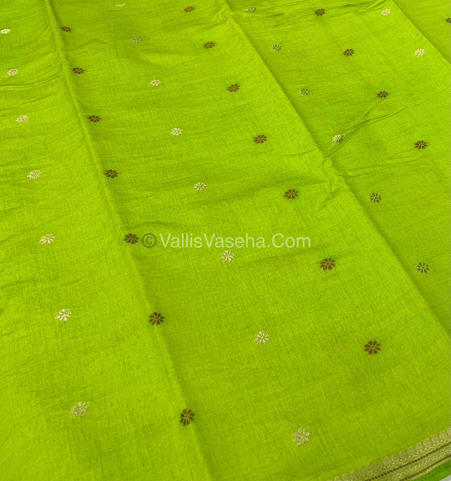 Semi Tussar Silk Saree - Lemon Green shade - VVSTS011
