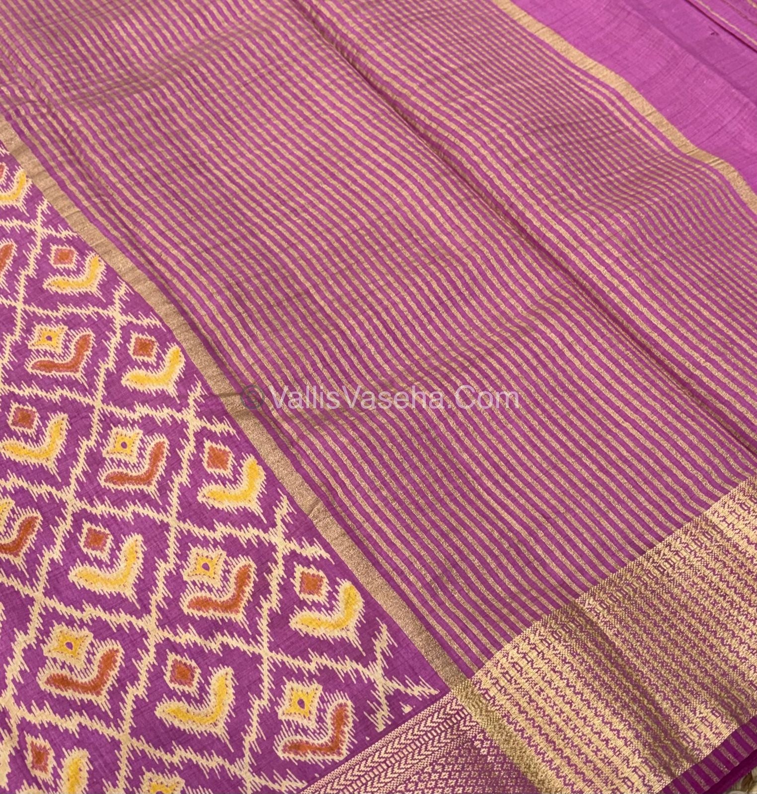 Semi Tussar Silk Saree - Ikkat / Pochampally Design - Onion Pink Shade - VVSTS033