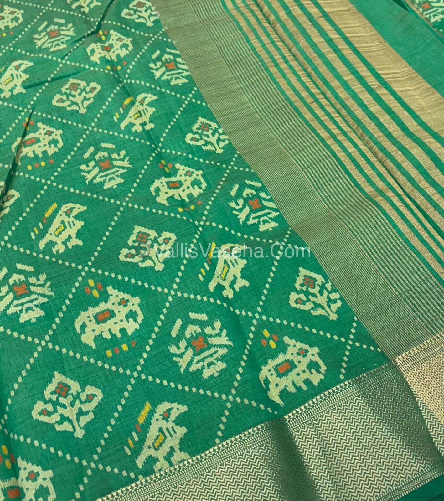 Semi Tussar Silk Saree - Ikkat / Pochampally Design - Ramar Green Shade - VVSTS034