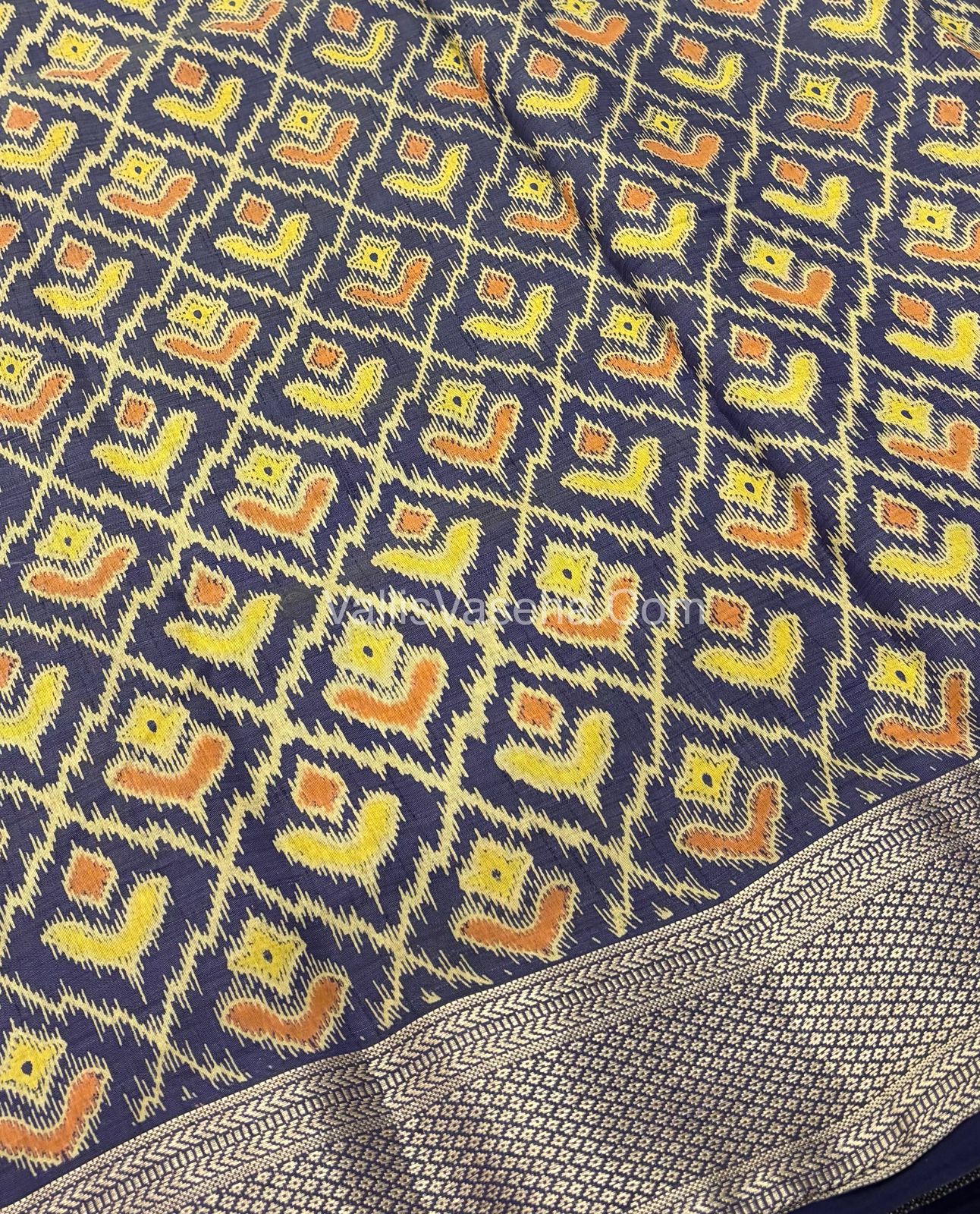 Semi Tussar Silk Saree - Ikkat / Pochampally Design - Navy Blue Shade - VVSTS033