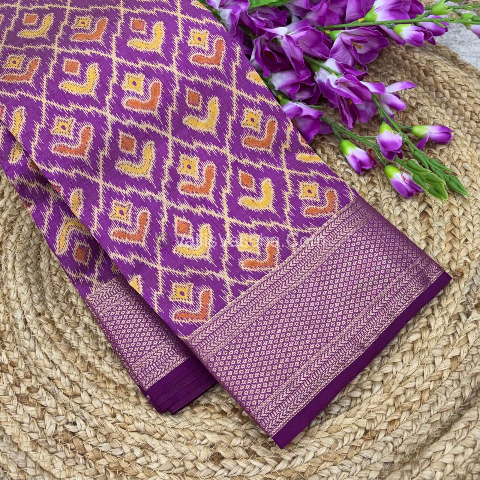 Semi Tussar Silk Saree - Ikkat / Pochampally Design - Purplish Pink Shade - VVSTS033