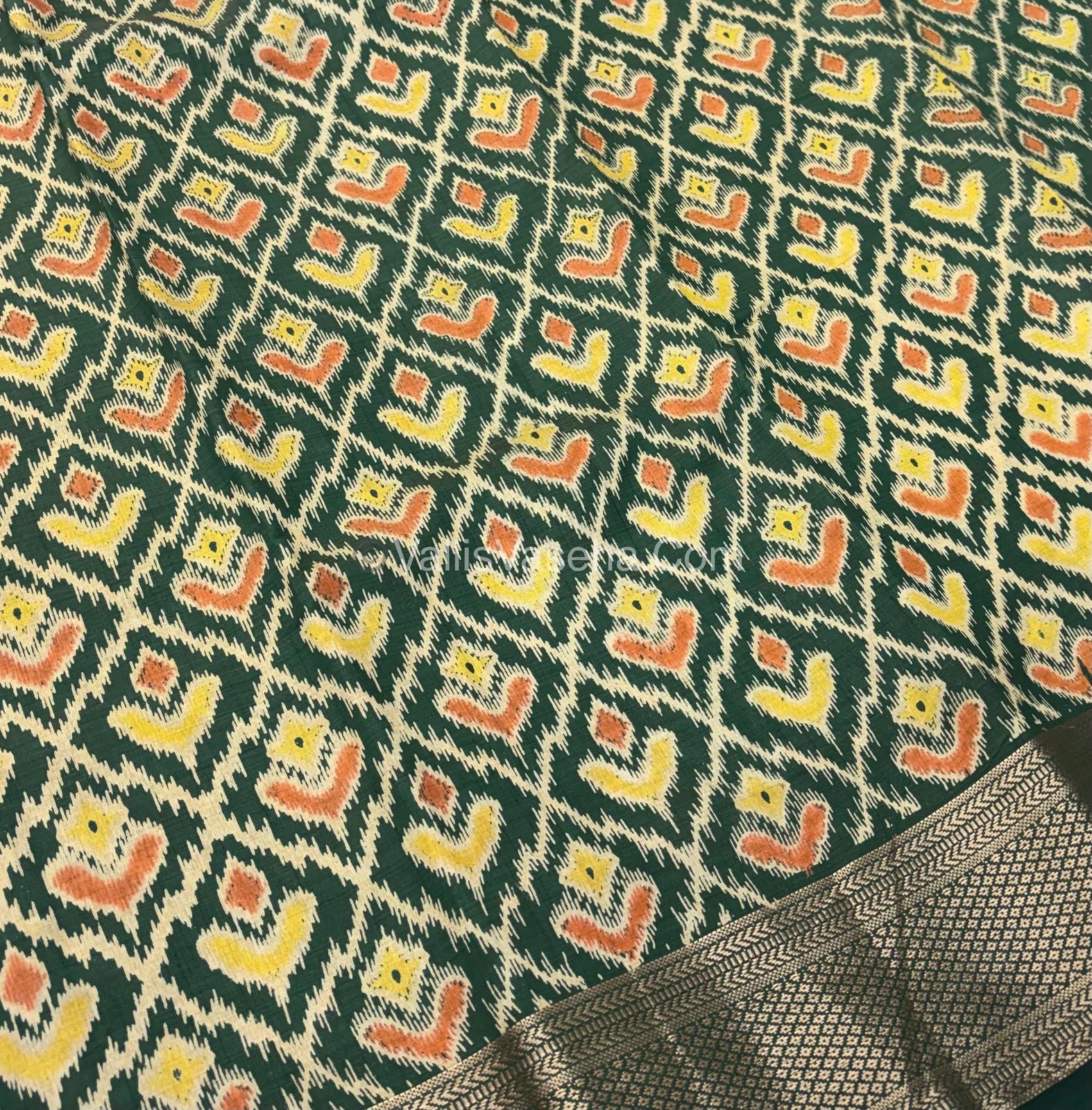 Semi Tussar Silk Saree - Ikkat / Pochampally Design - Dark Green Shade - VVSTS033
