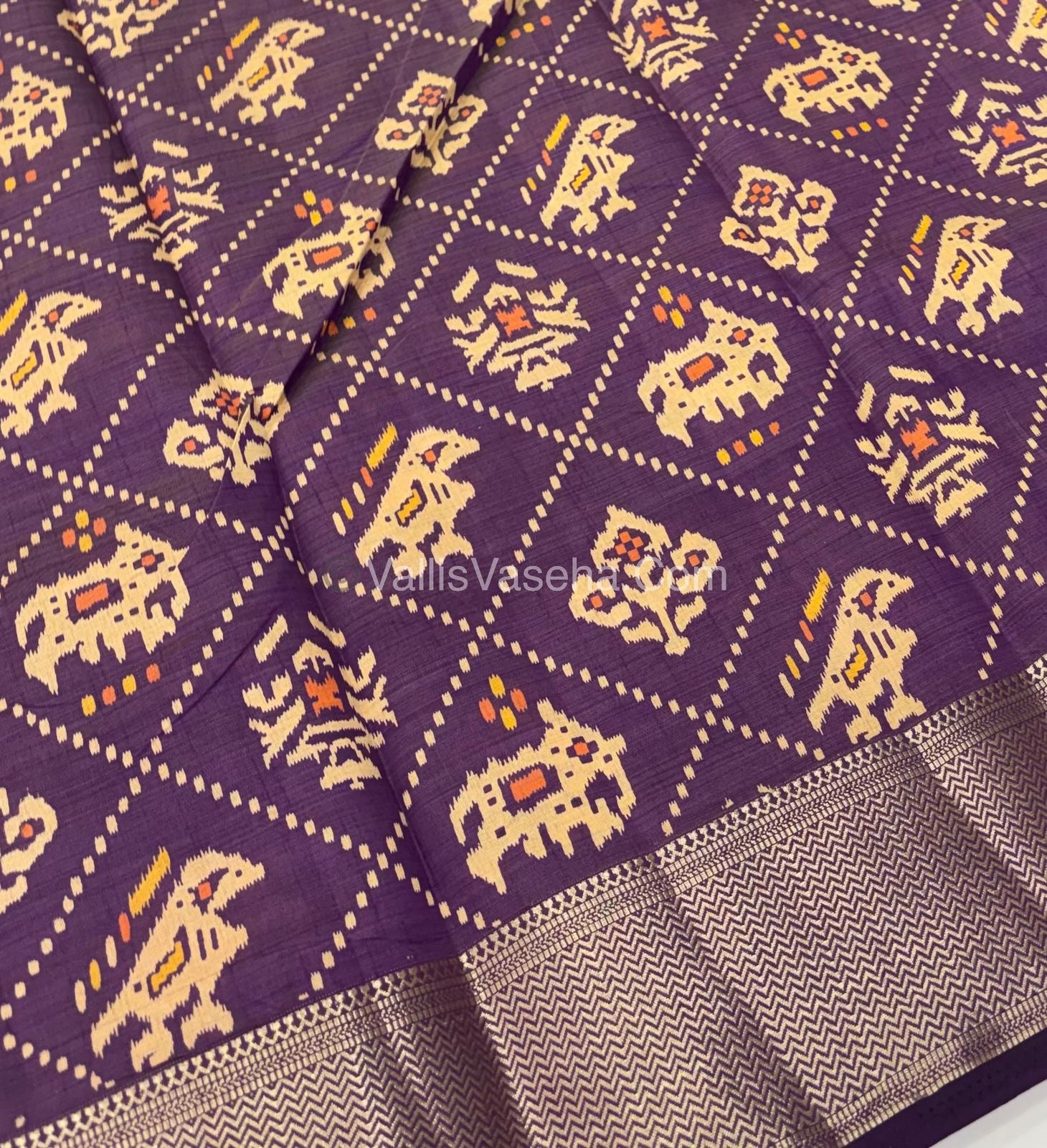 Semi Tussar Silk Saree - Ikkat / Pochampally Design - Dark Purple Shade - VVSTS034